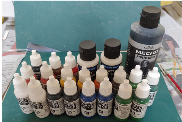169블랙*3, 매트미디움60ml*2 (전부새거임.) 메카프라이머 블랙200ml(32스케일 인형 5마리 칠하는데 썼음. 거의 새거나 마찬가지임.)