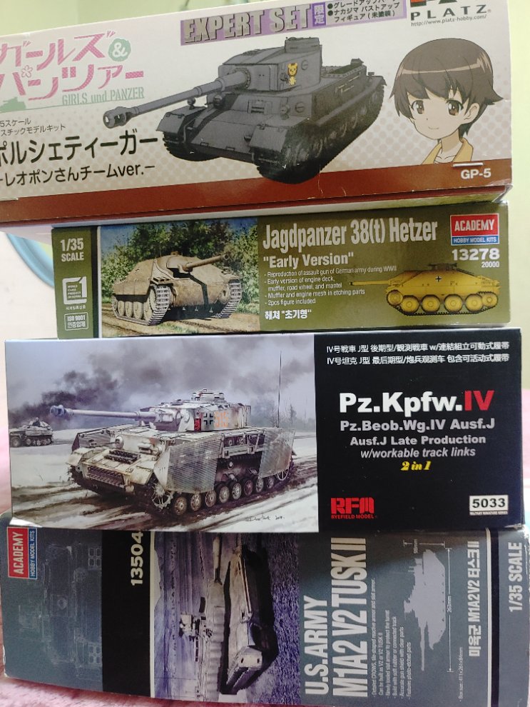 1. 걸즈앤판처 포르쉐티거(업그레이드 런너가 포함되어있습니다. 단 데칼과 스티커, 레진 피겨가 없습니다. 또 페르디난트용 부품 1개 사용했습니다. 일반 포르쉐 티거 만드실 분들이 구매 하셨으면 합니다.): 25000원