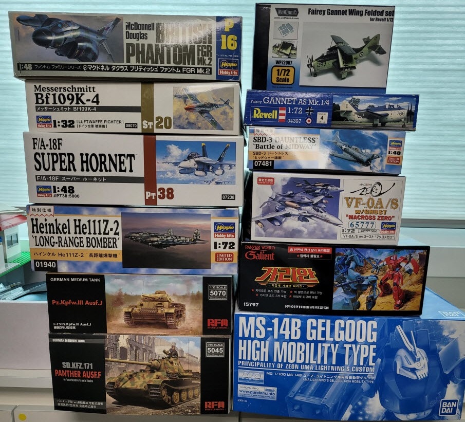 1. 하세가와 1/48 영국팬텀(내용물은 한정판 09331 MK.1 입니다. 내용물은 미개봉인지만 장마피해를 당해서인지 설 명서와 데칼의 상태가 좋지 않습니다. 벌크정도 생각하시면 될듯합니다.) - 3만원