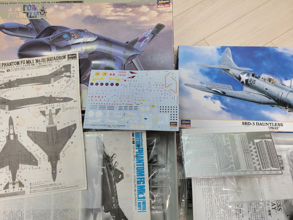 2. 하세가와 1/48 영국팬텀(내용물은 한정판 09331 MK.1 입니다. 내용물은 미개봉인지만 장마피해를 당해서인지 설 명서와 데칼의 상태가 좋지 않습니다. 벌크정도 생각하시면 될듯합니다.) - 3만원