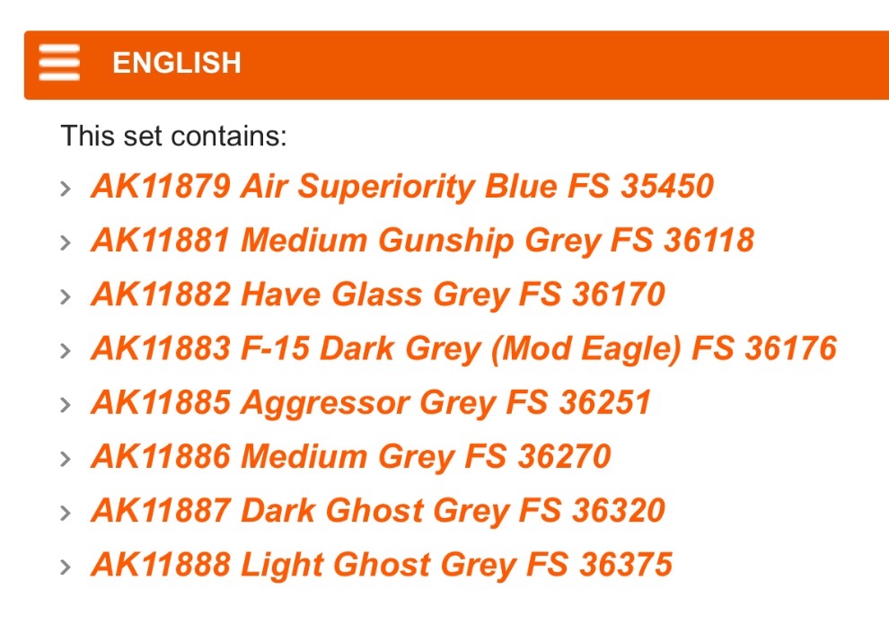 AK 3세대 아크릴 미공군 현용기 컬러세트 판매합니다.