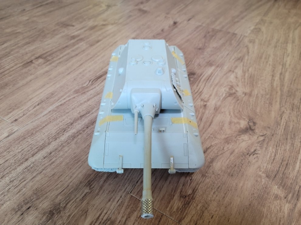 제품은 드래곤사(1/35) E-100 입니다. 조립만 끝내고 장식장에 올려두었고, 누런색은 접착제가 빛바랜 색입니다.