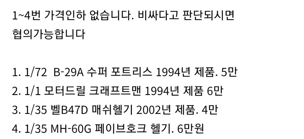 - 판매 가격에 대한 이의를 제기할 수 없습니다.