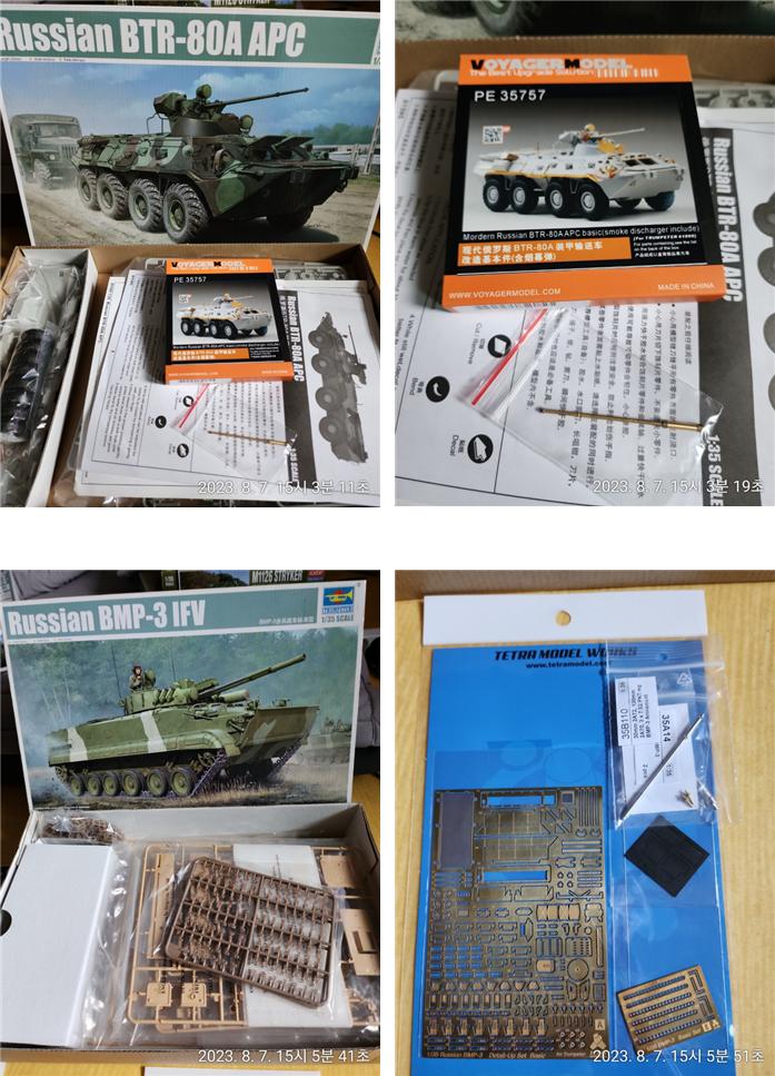 1. 트럼펫 BTR-80 Set(킷+보이져에칭셋+트럼펫 30mm 2A72 메탈포신) 판매가 60000원