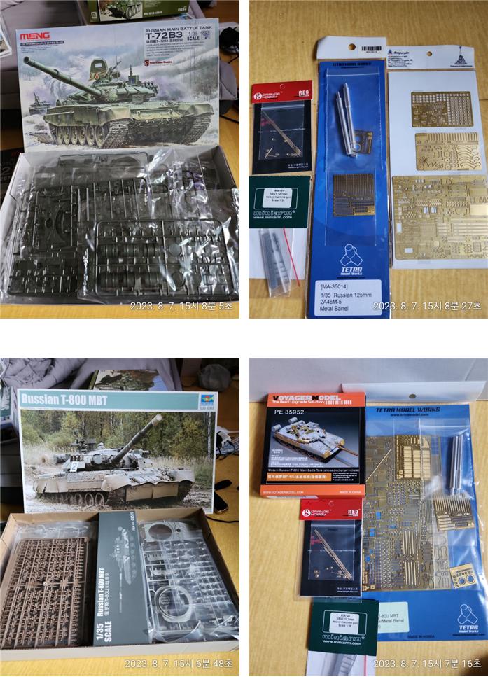 3. 트럼펫 T-80U Set(킷+테트라에칭셋+보이져에칭셋+오렌지하비 현용러시아 안테나셋+미니암 레진대공기관총)