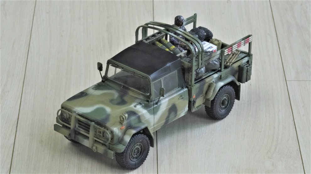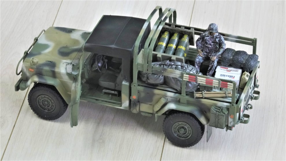 킷외에 사용한 제품은 ,별매 레진장비품,,별매 한국군 위장무늬데칼,별매 메탈 안테나등등을 사용했습니다 운전석 및 조수석 문 열고 닫을수 있습니다.
