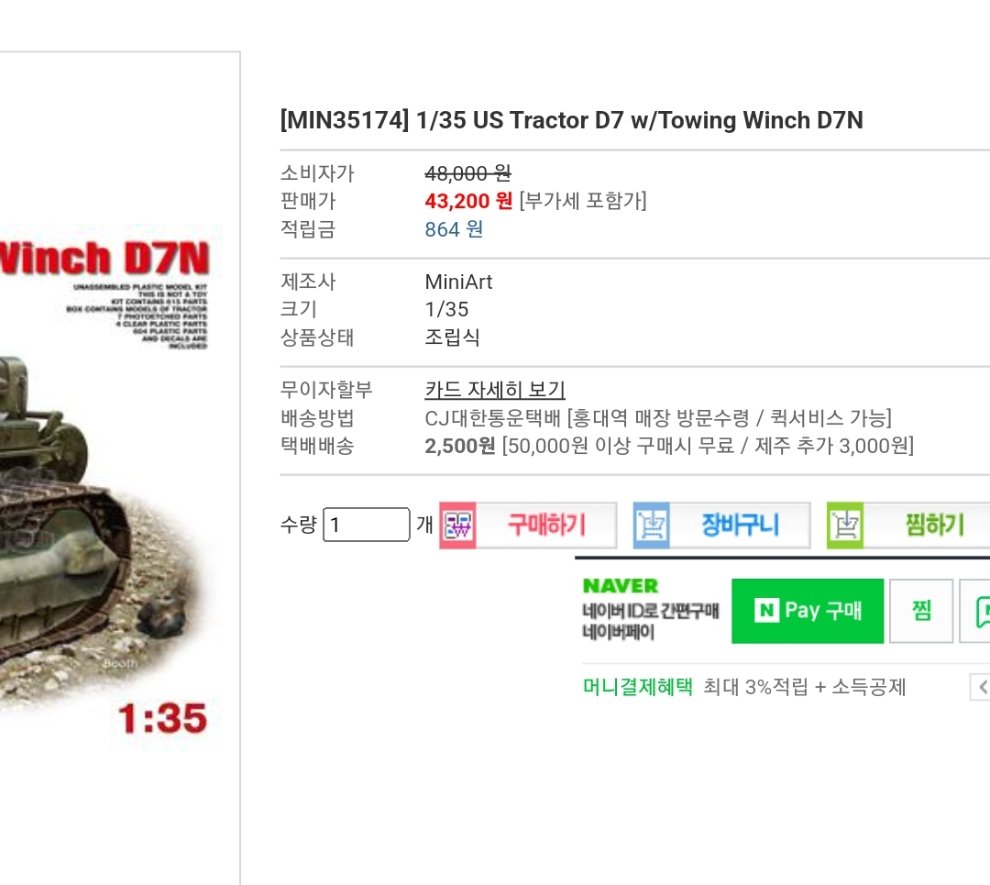 Miniart 1/35 US Tractor D7 w/Towing Winch D7N 23000원
