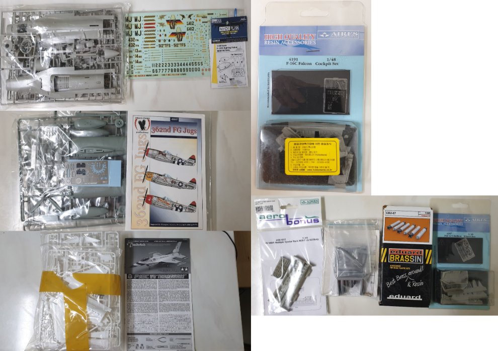하세가와 1/48 F-16C(박스, 설명서 없음, 데칼 황변) + Aires 전용 콕핏셋(시트부분 앞쪽 부러졌으나 순접으로 복구가능)