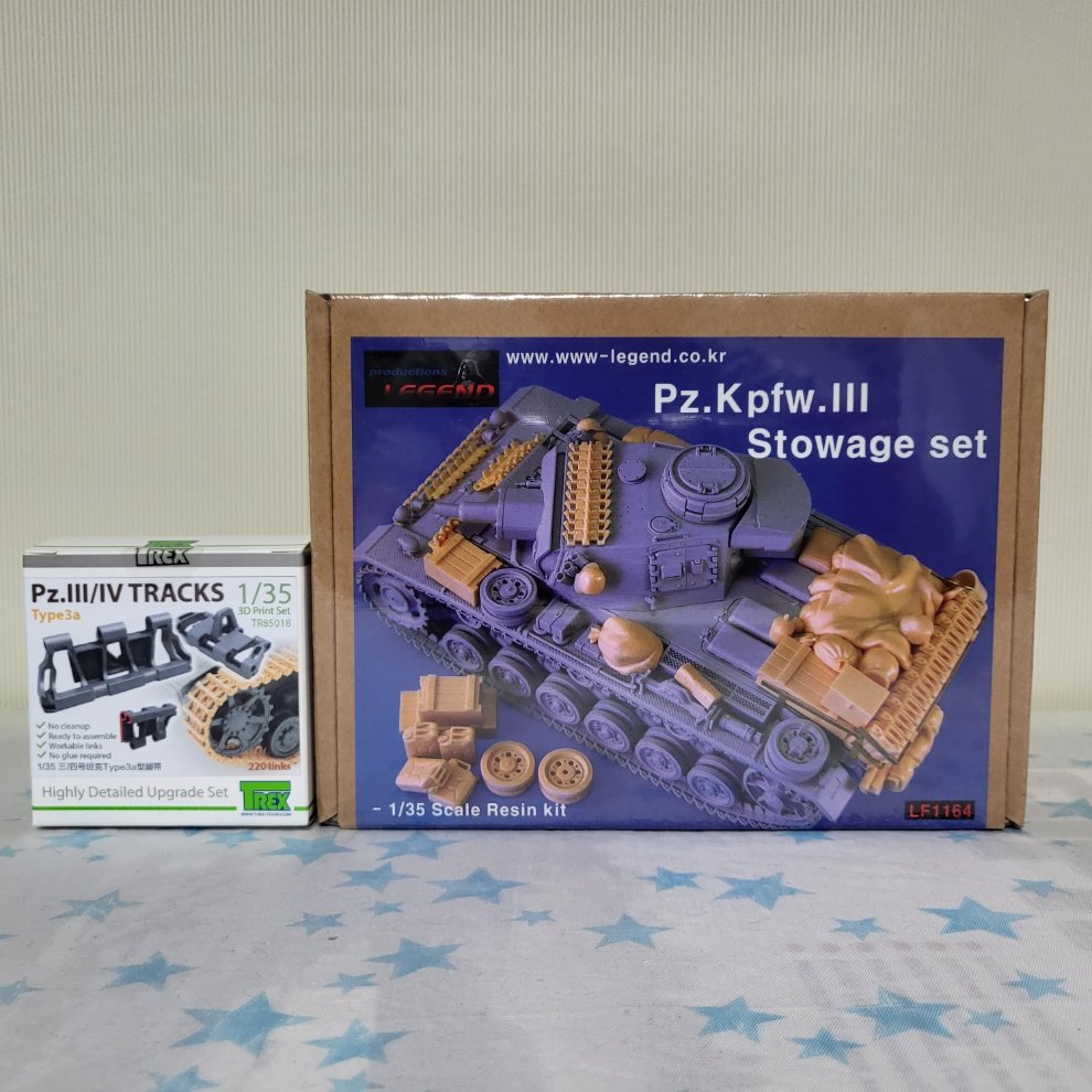 사진에서 보이는 바와 같이 1/35 3호 전차용 3D track과 레진 장비품 세트를 묶음으로 분양합니다~