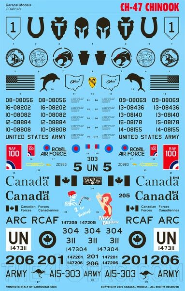 1.카라칼 데칼1/48 ch-47f 치누크 데칼 미군 캐나다군 등등포함 1.3만