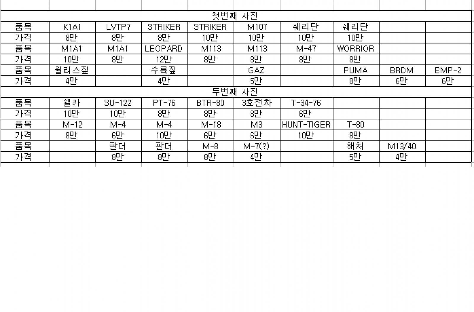 완성품 AFV 다수 팝니다.