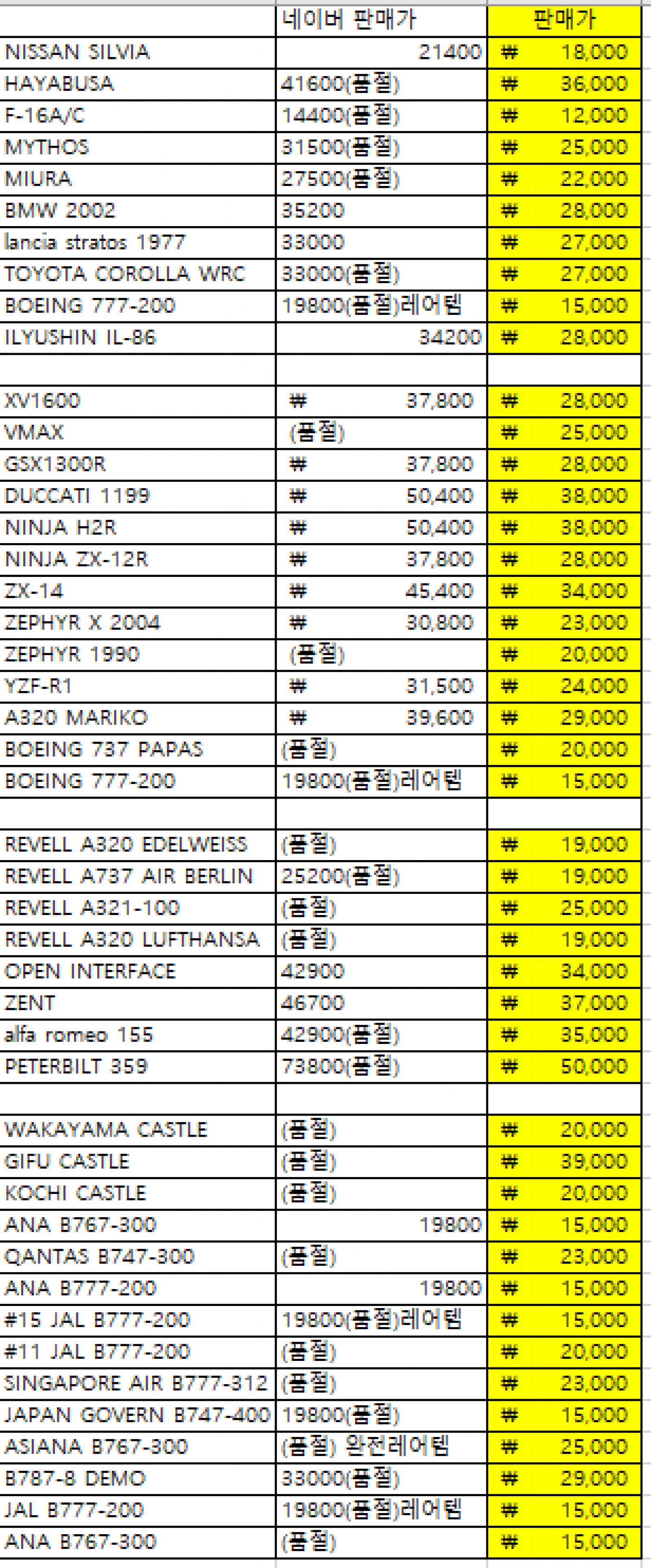 오토, 바이크, 민항기, 일본성(품절품 다수) 대량판매