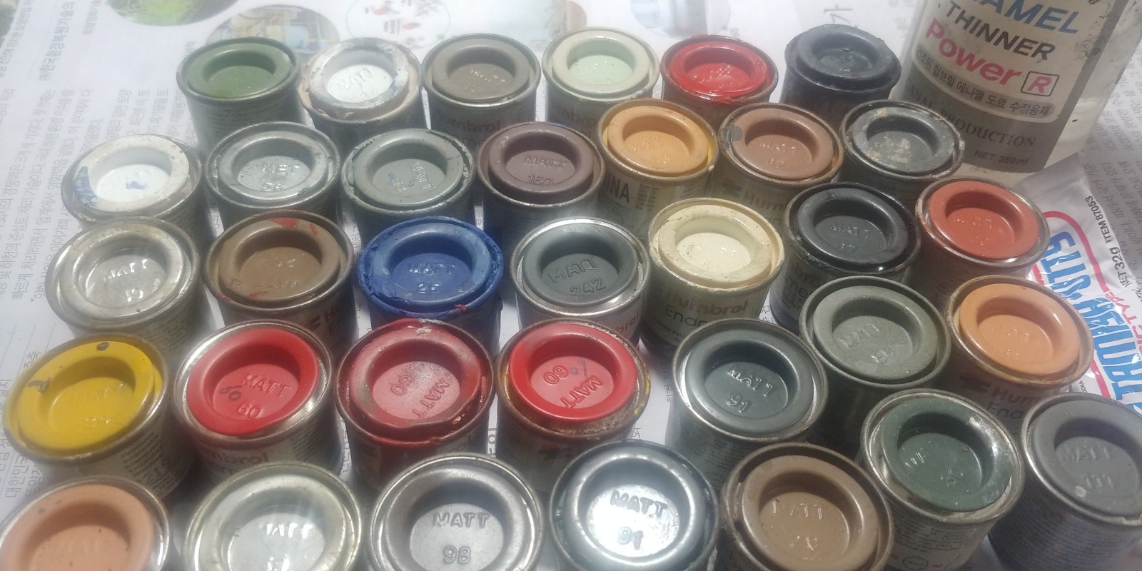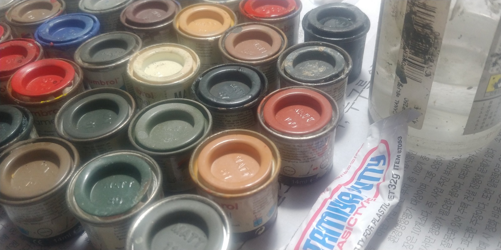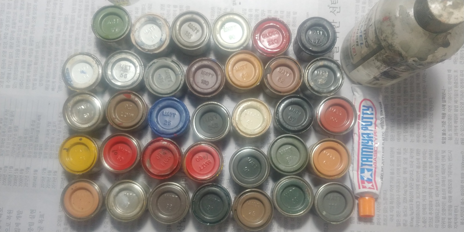 새 것도 있고 중간 사용한 것, 거의 다 사용한 것 섞여 있습니다. + 험브롤 파워신너 약간+ 타미야 베이직퍼티 살짝
