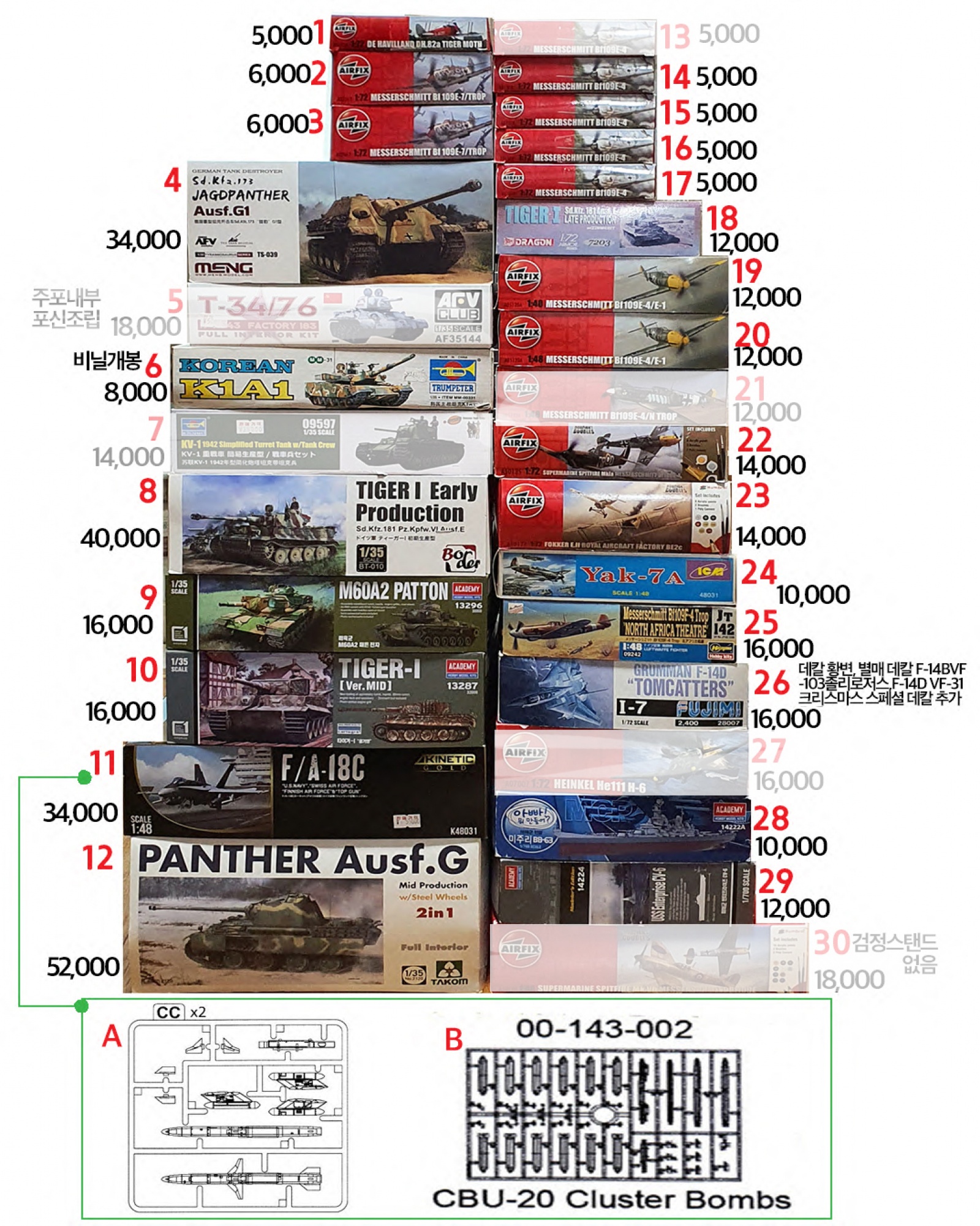 사진의 키트 팝니다. 옆에 설명글이 없는 것은 미개봉입니다.