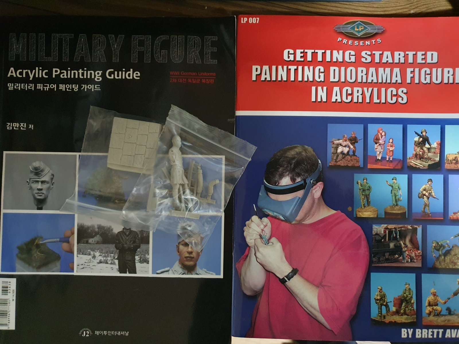 피규어 페인팅 서적 2권 및 김만진 피규어아트에 동봉된 정품 레진 인형 일괄로 판매합니다.