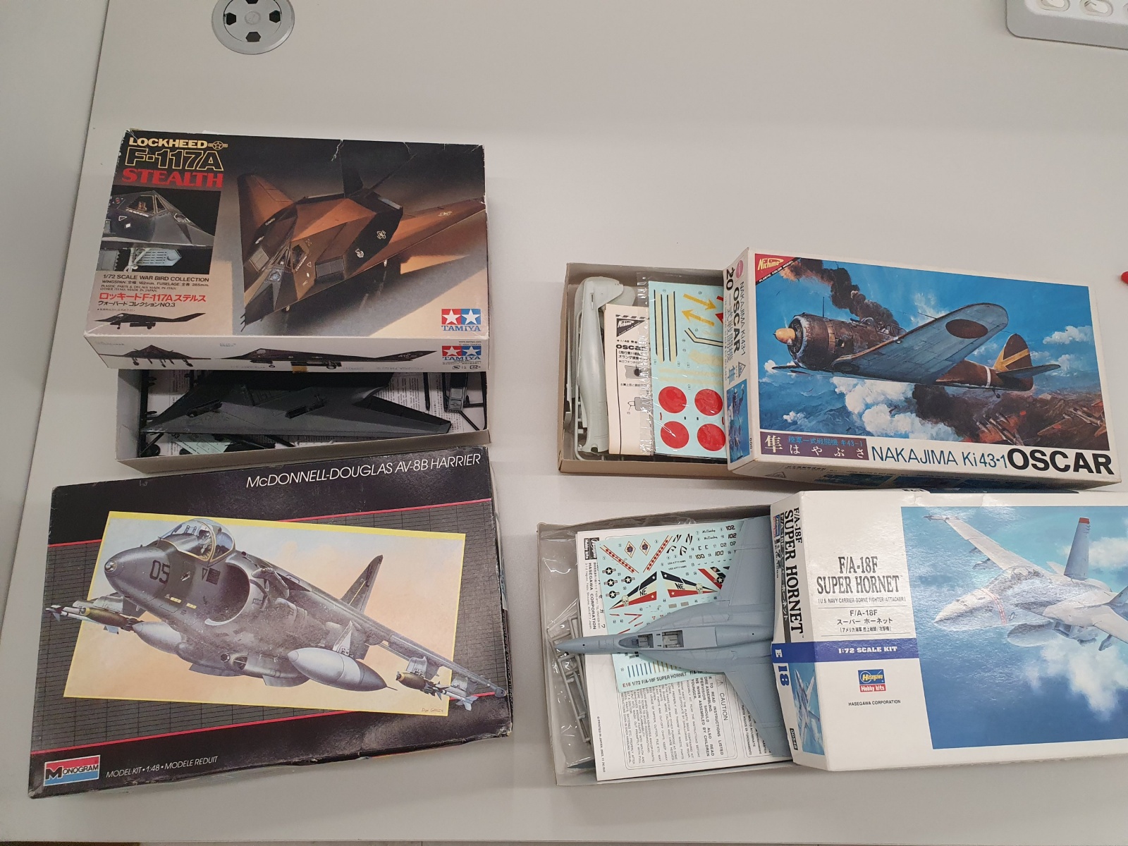 비행기 키트 모노그램 해리어, 오스카(일부 도색) 및 정크 제품 2개