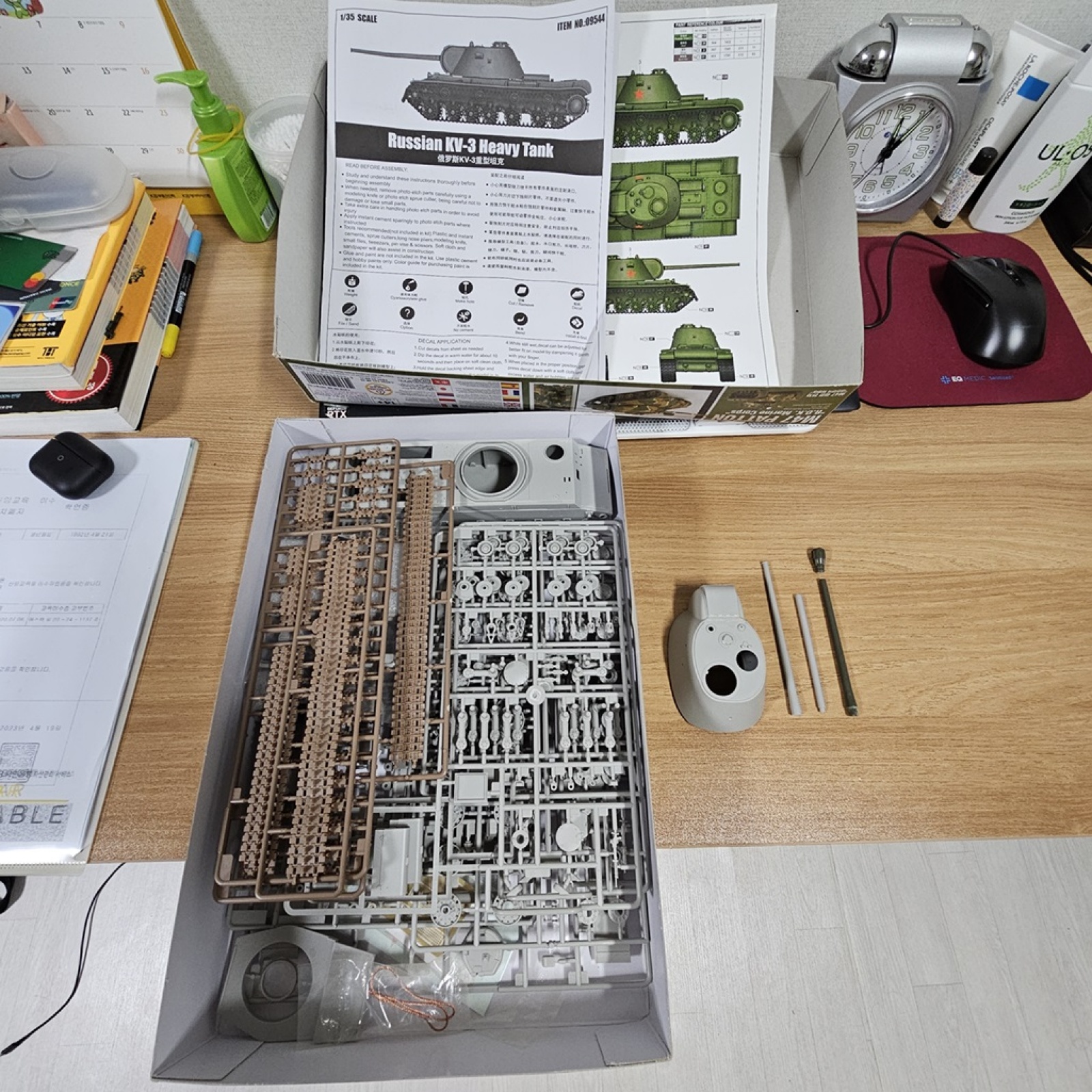 트럼페터 1/35 KV-3 : 킷 박스 없음/차체,포탑 일부 조립/동사 IS-3 122mm 주포 조립 후 분해(세번째 사진)