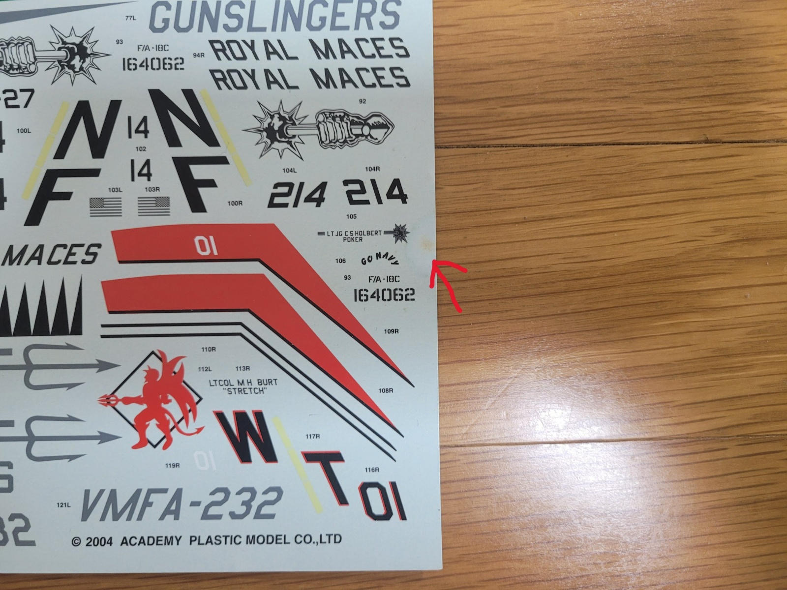 F-18은 데칼 측면에 조그맣게 얼룩이 있습니다. (마지막 사진)