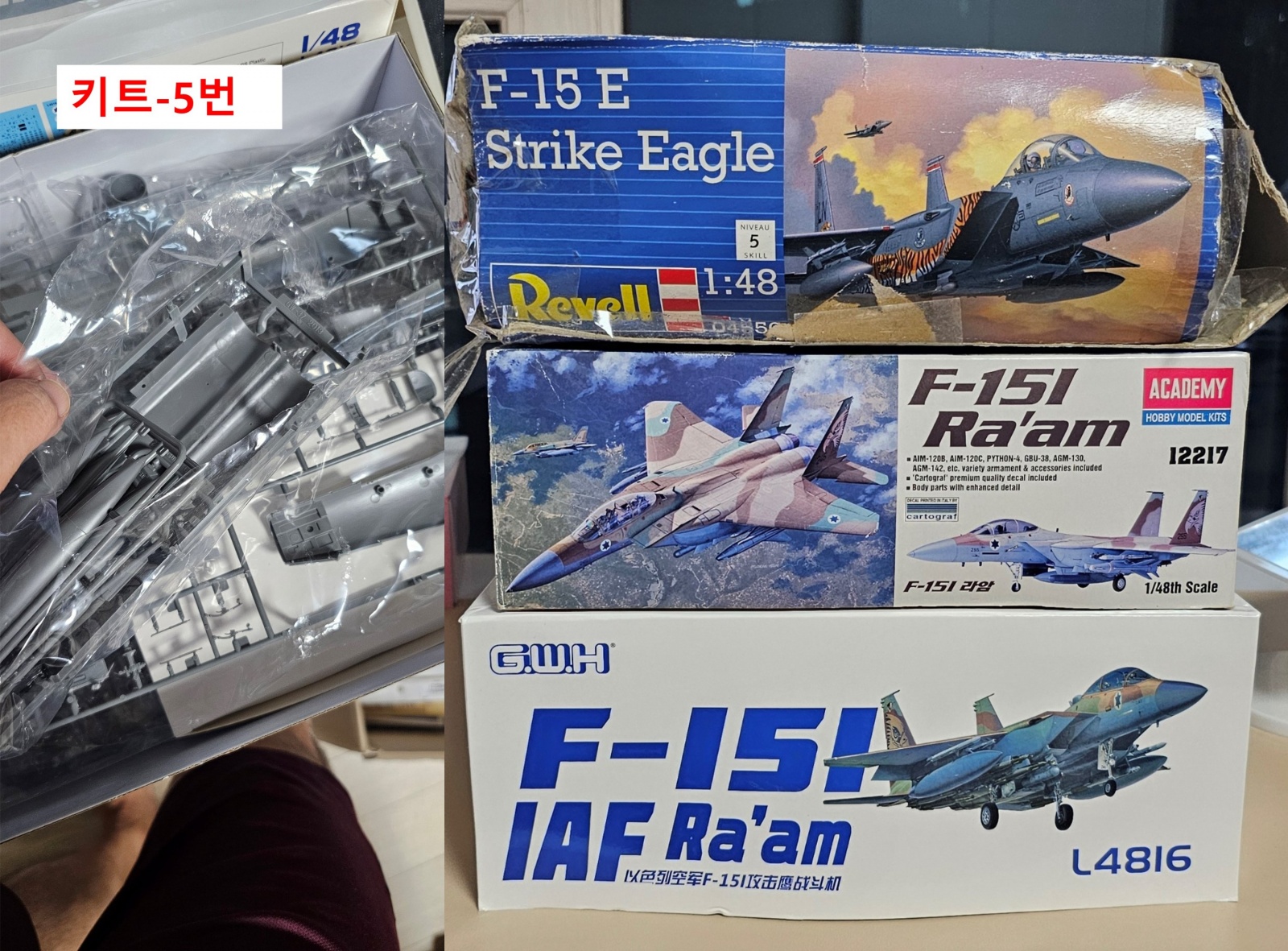 키트-5번 : 1/48 레벨 F-15E, 아카데미 F-15I, 만리장성 F-15I+레스킷 휠세트(만리장성 동체하부 비닐개봉) : 10만원