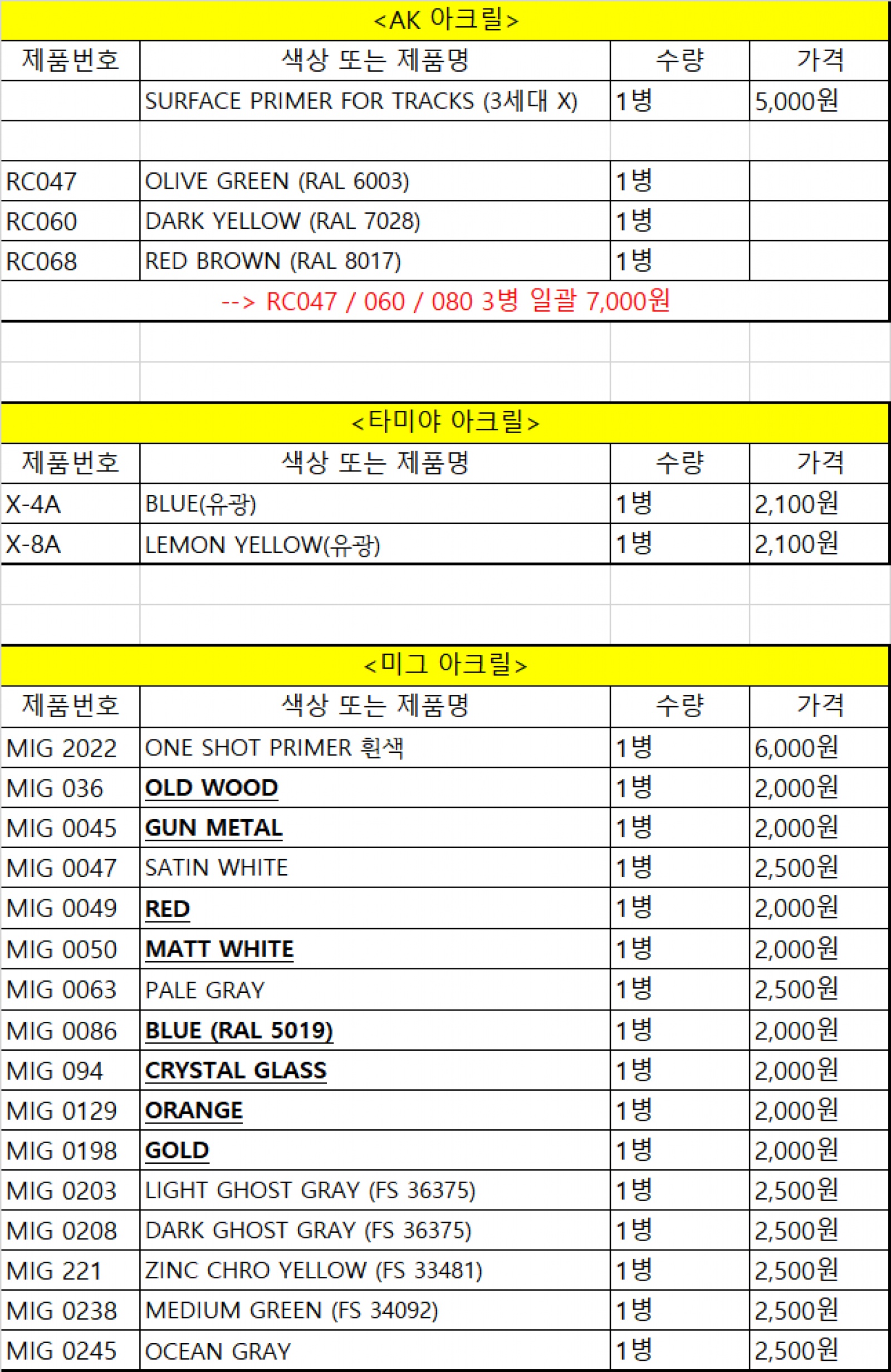* 아크릴 도료 일괄 구매시 AK 수성 아크릴 신너 (AK712) 1병 서비스로 같이 드립니다.
