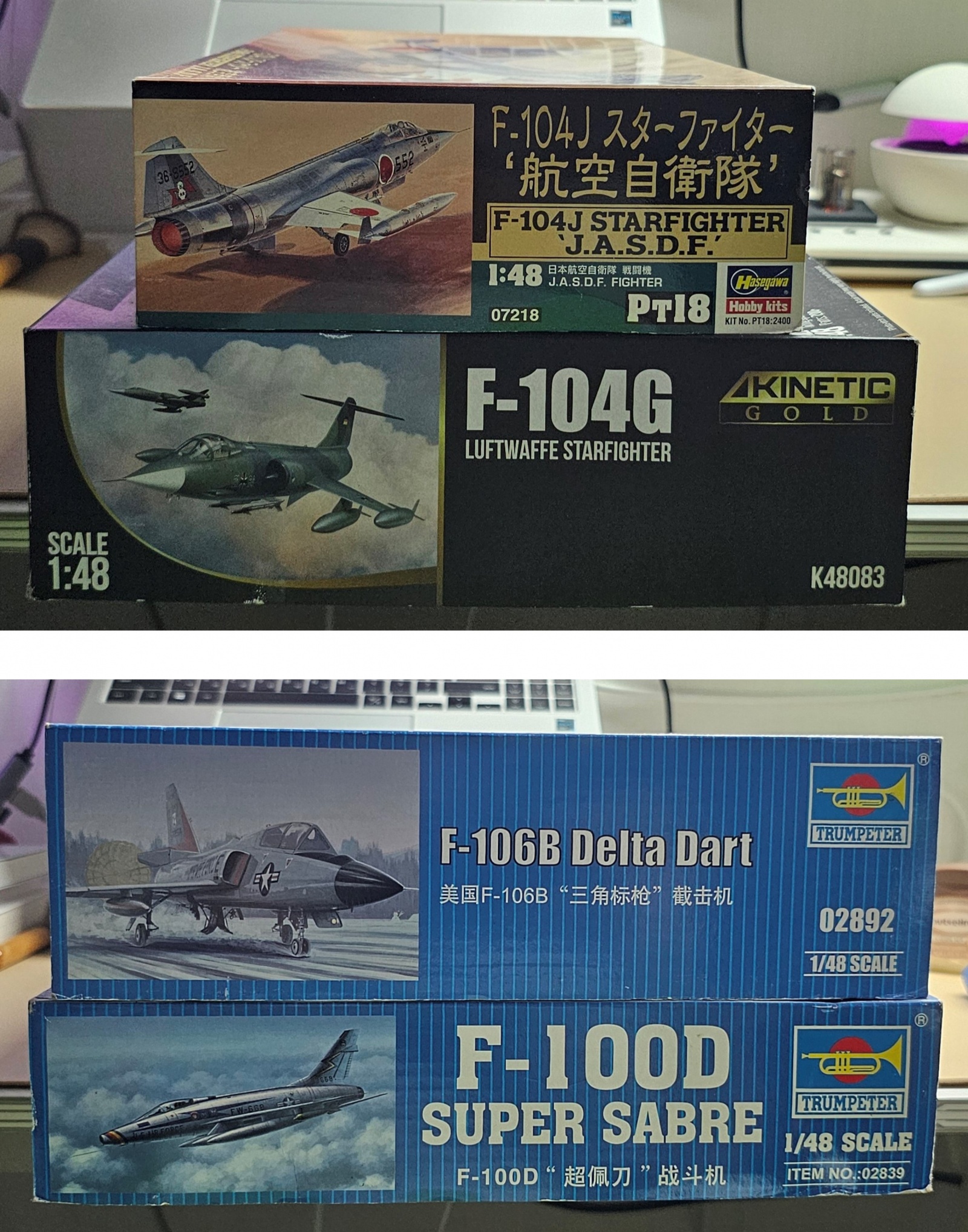 3. 1/48 키네틱 F-104G, 하세가와 F-104J(내부 비닐 개봉, 데칼 황변) : 5만원(배송비 포함)
