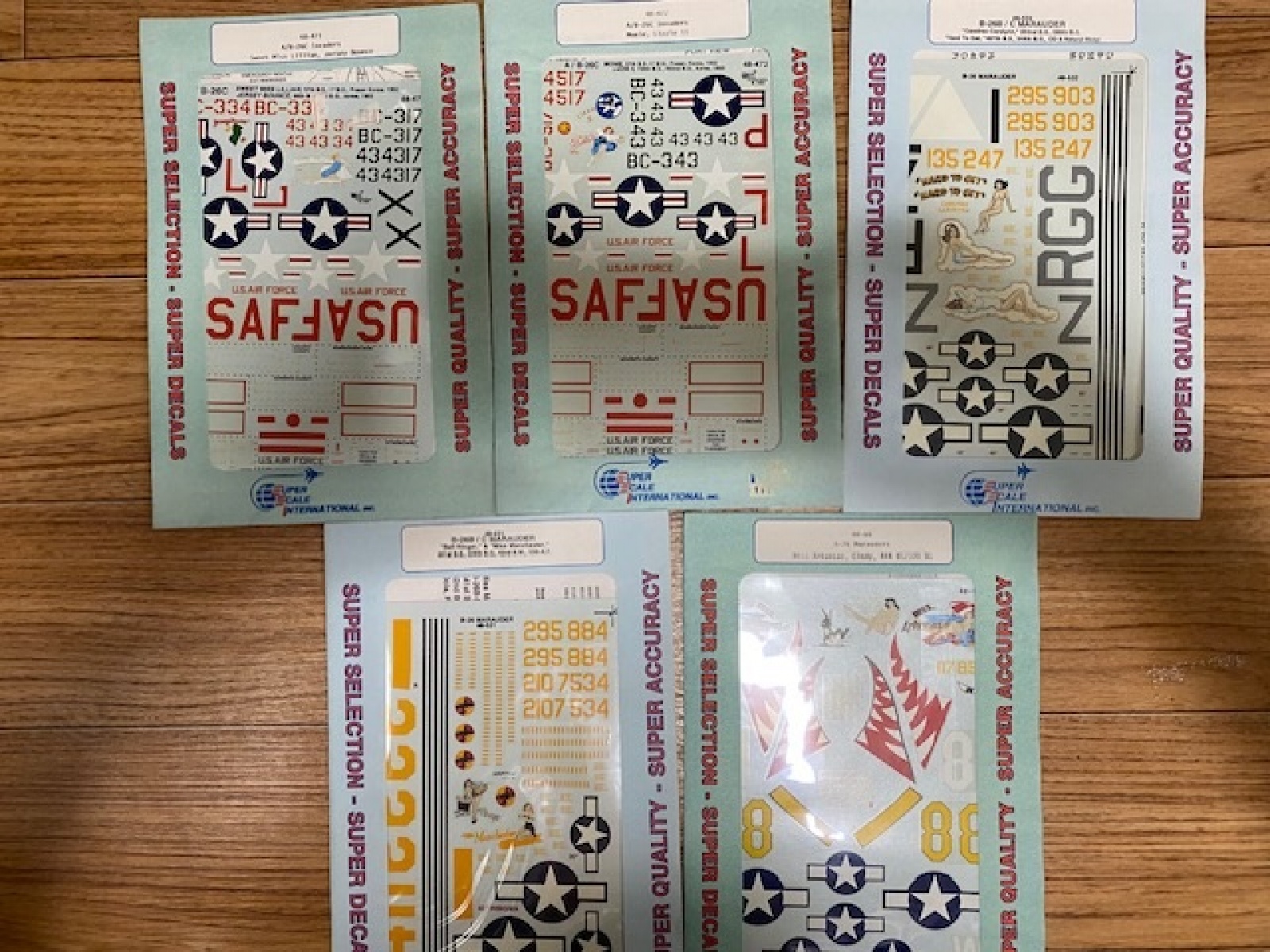 2번 세트 1/48 b-26 메이커킷데칼 한계가 있어서 노즐아트 때문에 모을수 있는곳이면 다 구했음 5장택배비 포함 5만원
