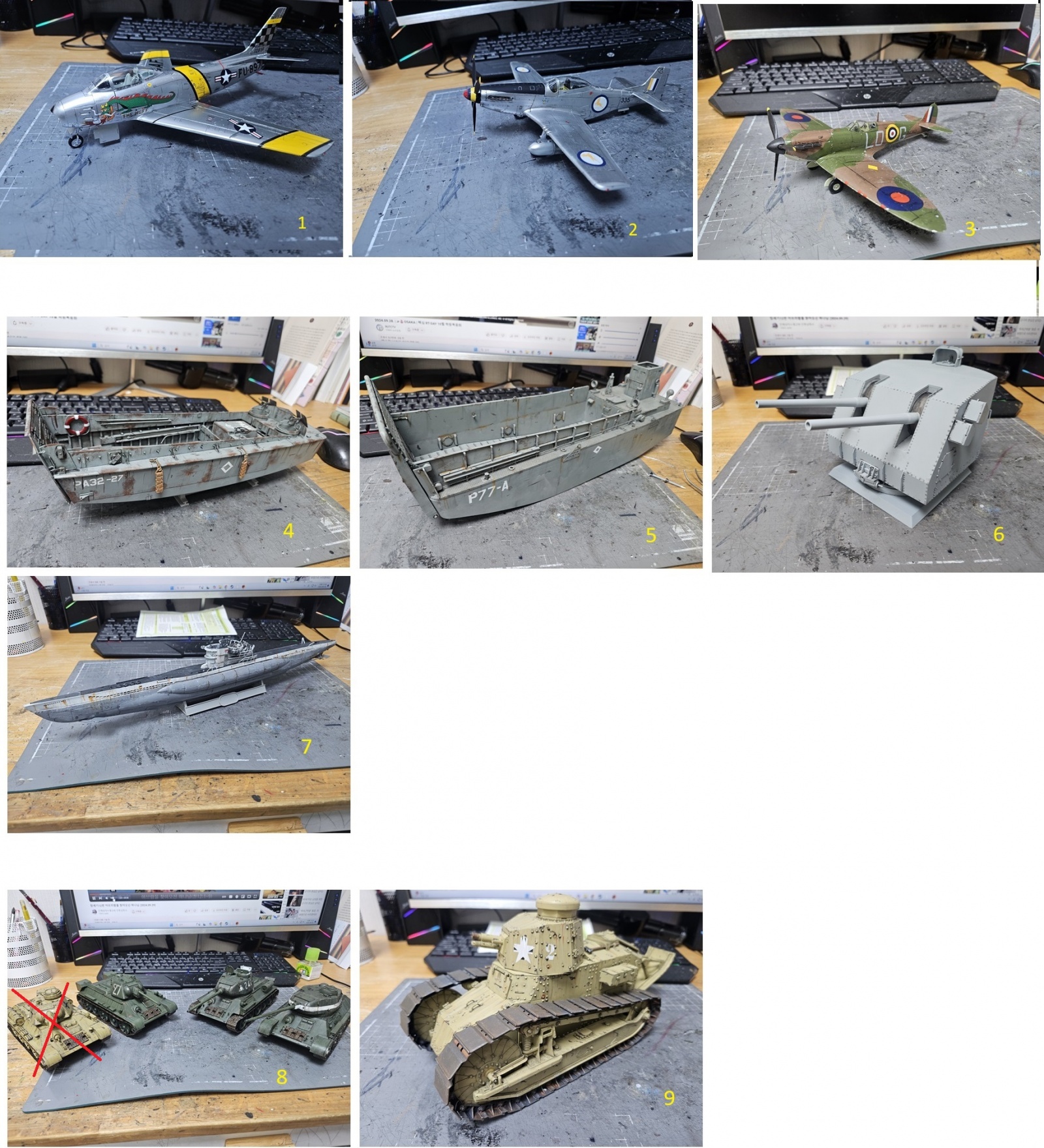 (1. 아카데미 1/48 F-86F, 2. 브롱코 1/48 F-51D, 3. 에어픽스 1/48 스핏파이어- 모두 판매완료)