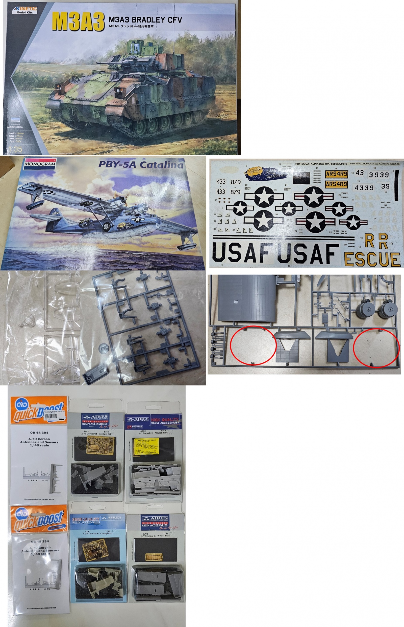 1/48 PBY-5A 카탈리나(레벨/모노그람, 상태 사진 참조) : 주익 끝 플로팅 장치 부품 한쪽 분실(빨간색 동그라미) ,
