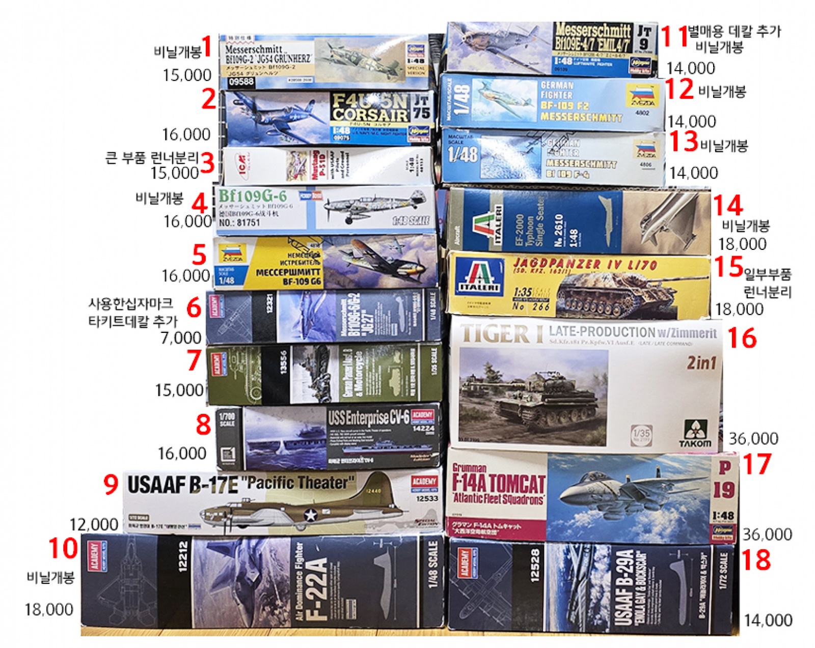 사진의 키트 팝니다. 옆에 설명글이 없는 것은 미개봉입니다.