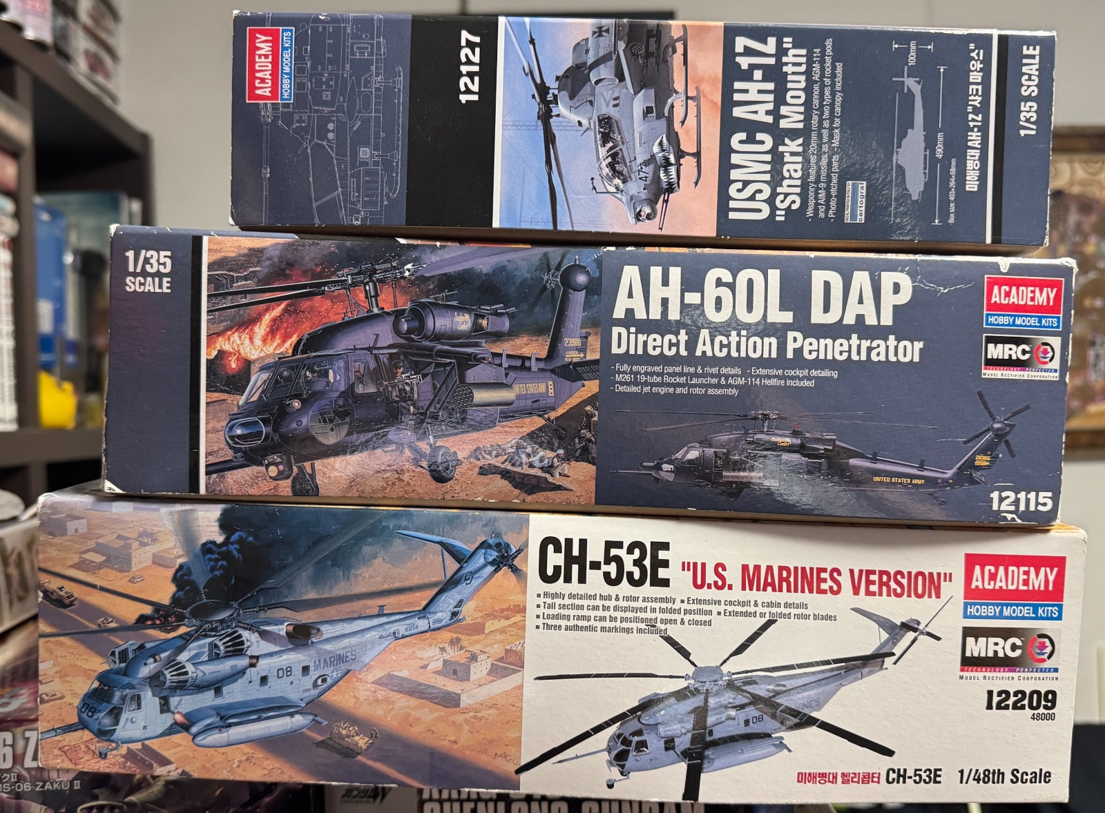 아카데미 헬리콥터 묶음으로 송료포함 12만원에 판매합니다.