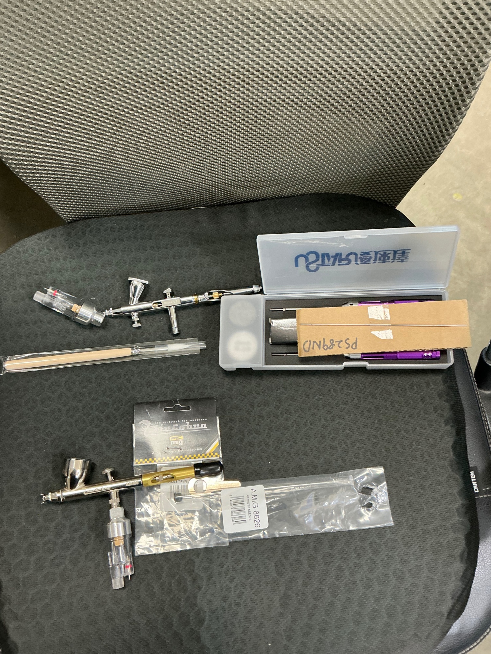 2-2 미사용 미그사 부러쉬 포장박스없음, 사진상 모두포함 14만착 에어브러쉬 일괄 구매시 거취대 드림,