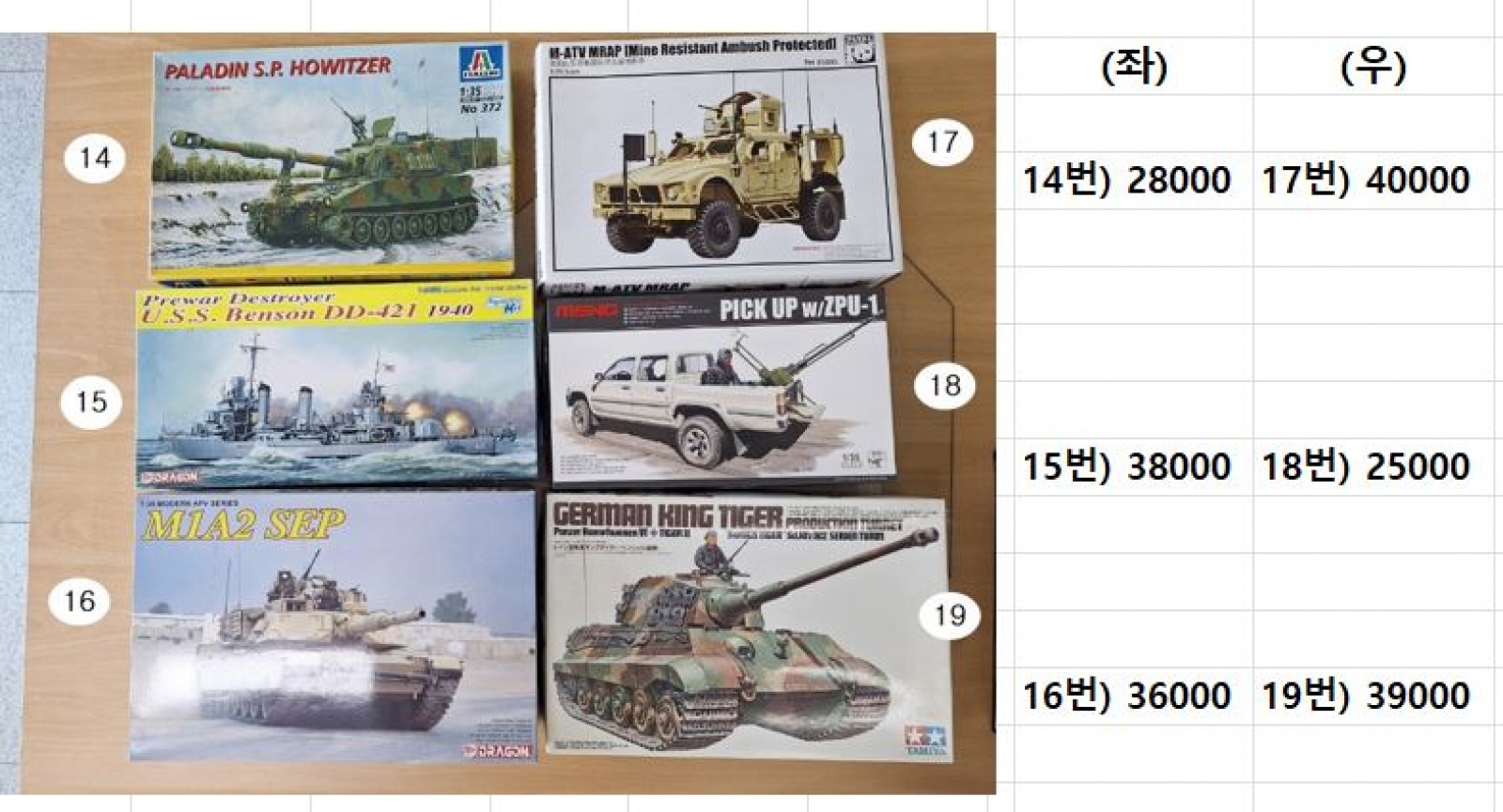 아래 프라모델 팝니다.