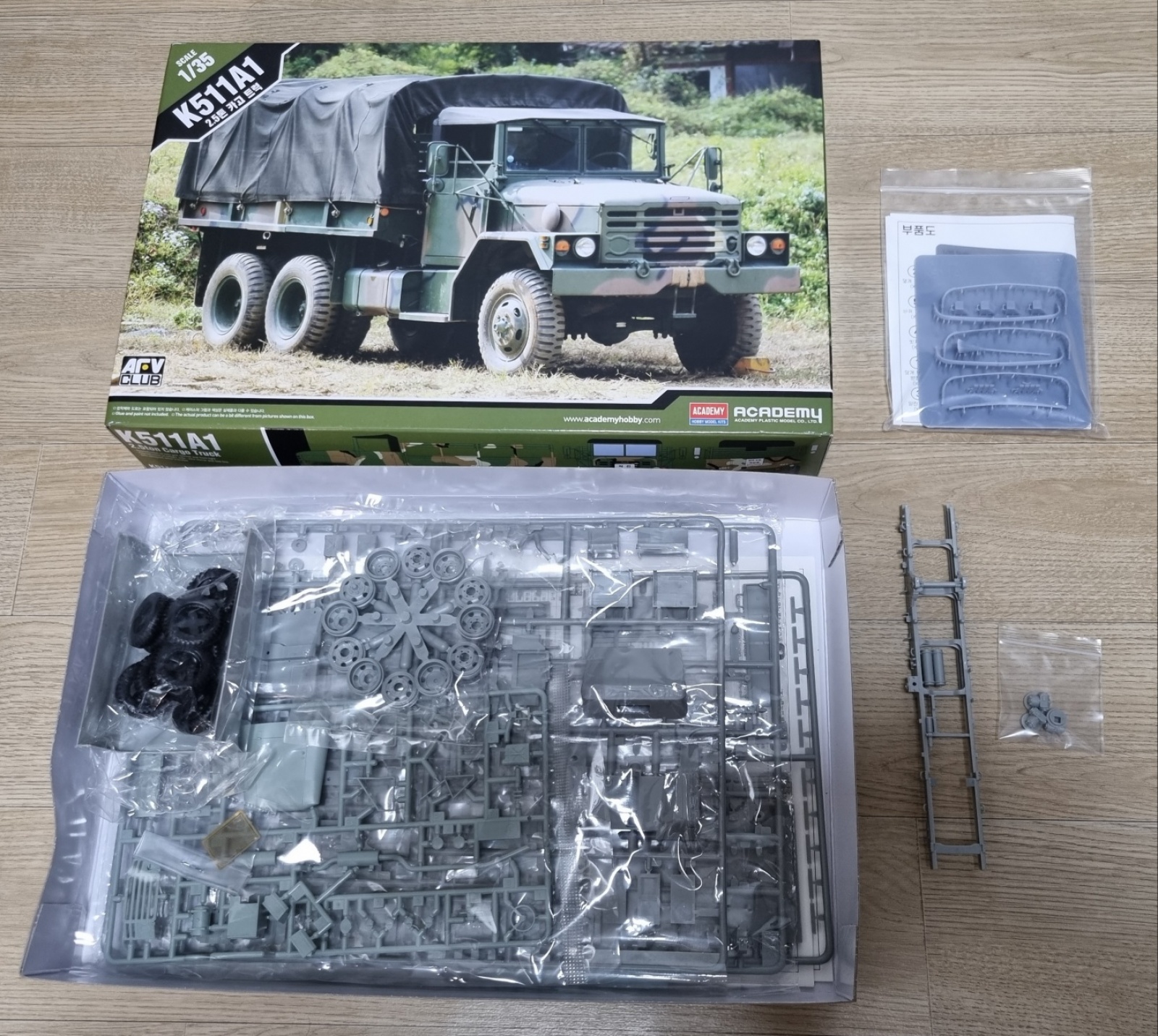 차대 일부만 조립된 아카데미 K511A1과 플라스틱 겉 포장만 제거한 빌덴의 K511A1 악세서리 키트 별매품입니다.