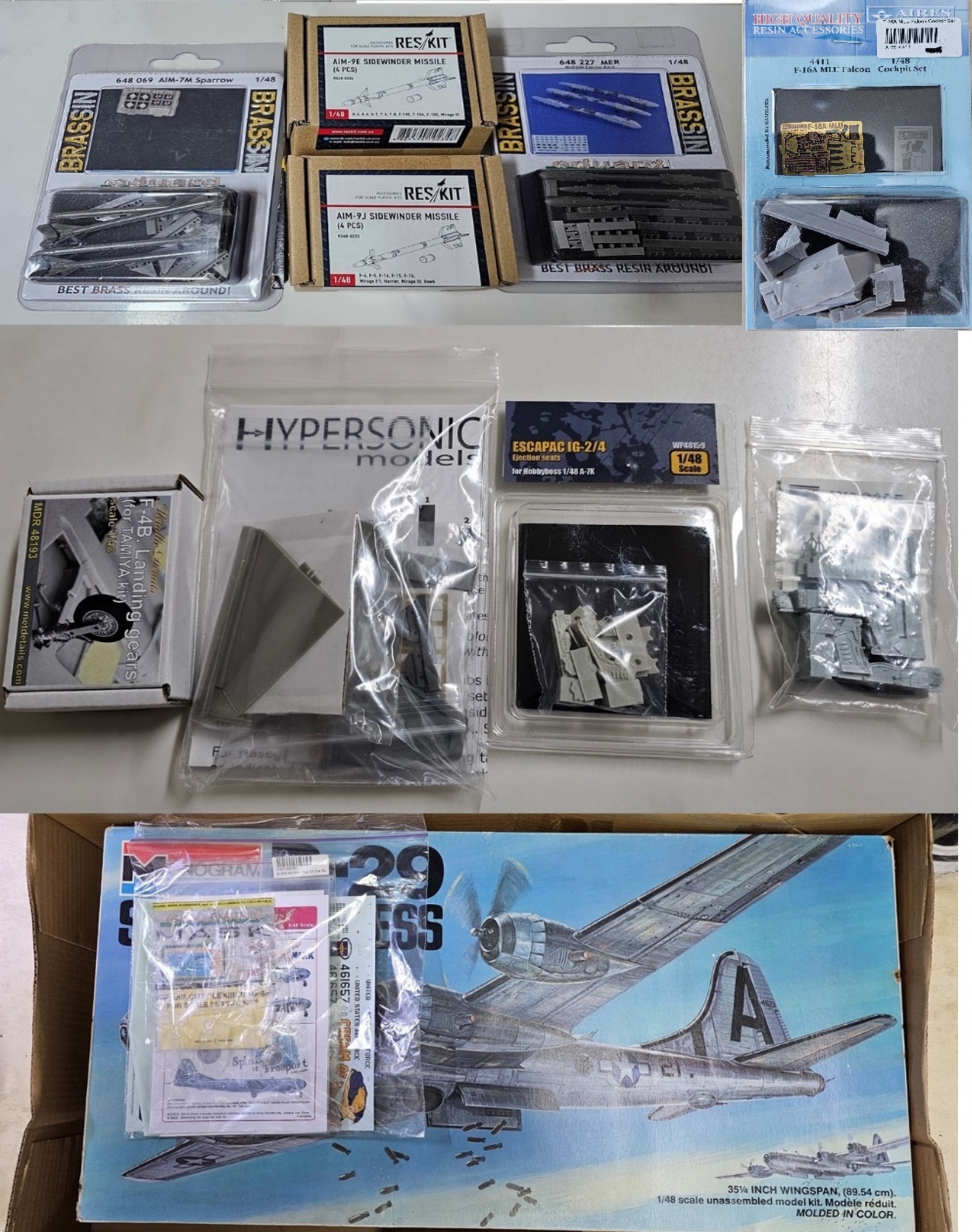 모노그람 1/48 B-29A ( 킷 포함데칼 및 박스 세월의 흔적있음,) + 에듀어드 캐노피 마스킹+ KitsWorld 한국전쟁 B-29 노즈아트 별매데칼 포함 : 8 만
