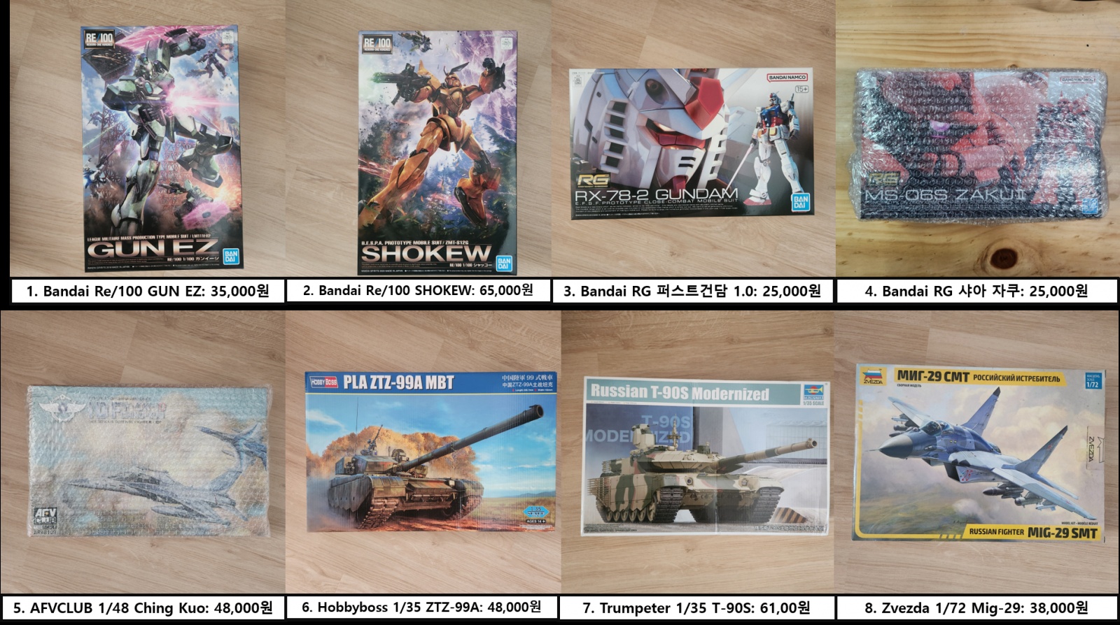 B. 5-8 키트들은 제가 외국에서 구매하거나 선물을 받은 키트들입니다. 제가 제품을 열어 검수한 것과는 별개로 제품 포장이 벗겨진 등의 하자가 있으니 이를 고려해주시길 바랍니다.
