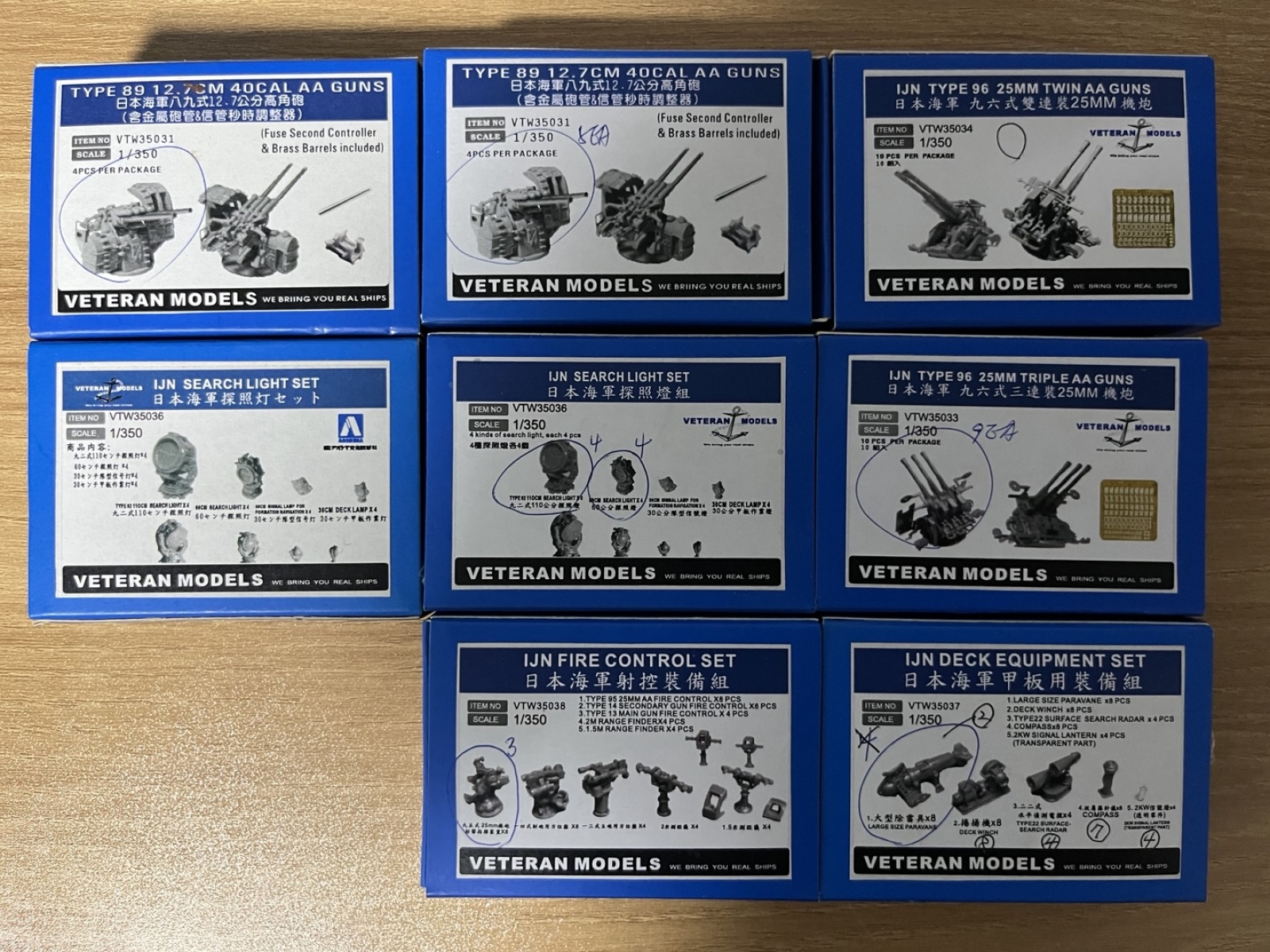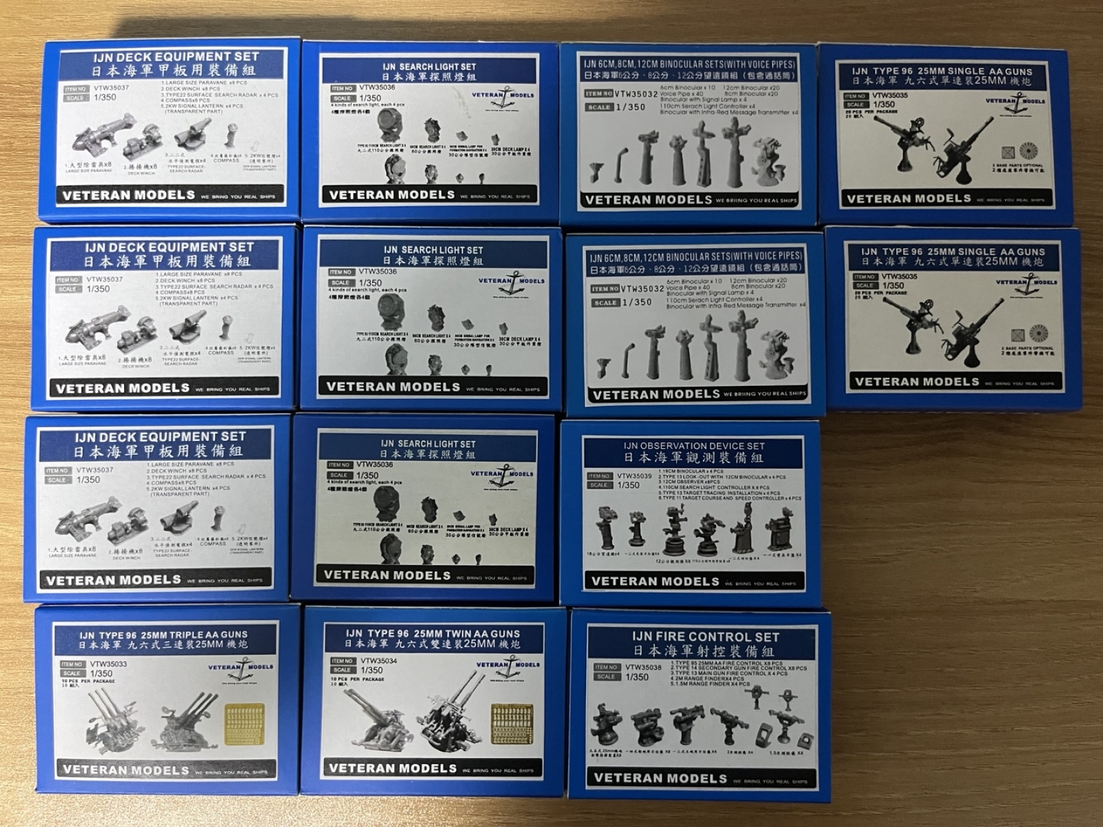 상기 1/350 함선용 베테랑 레진 디테일업 파츠 미개봉제품(14개)와 사은품용 정크(8개)를