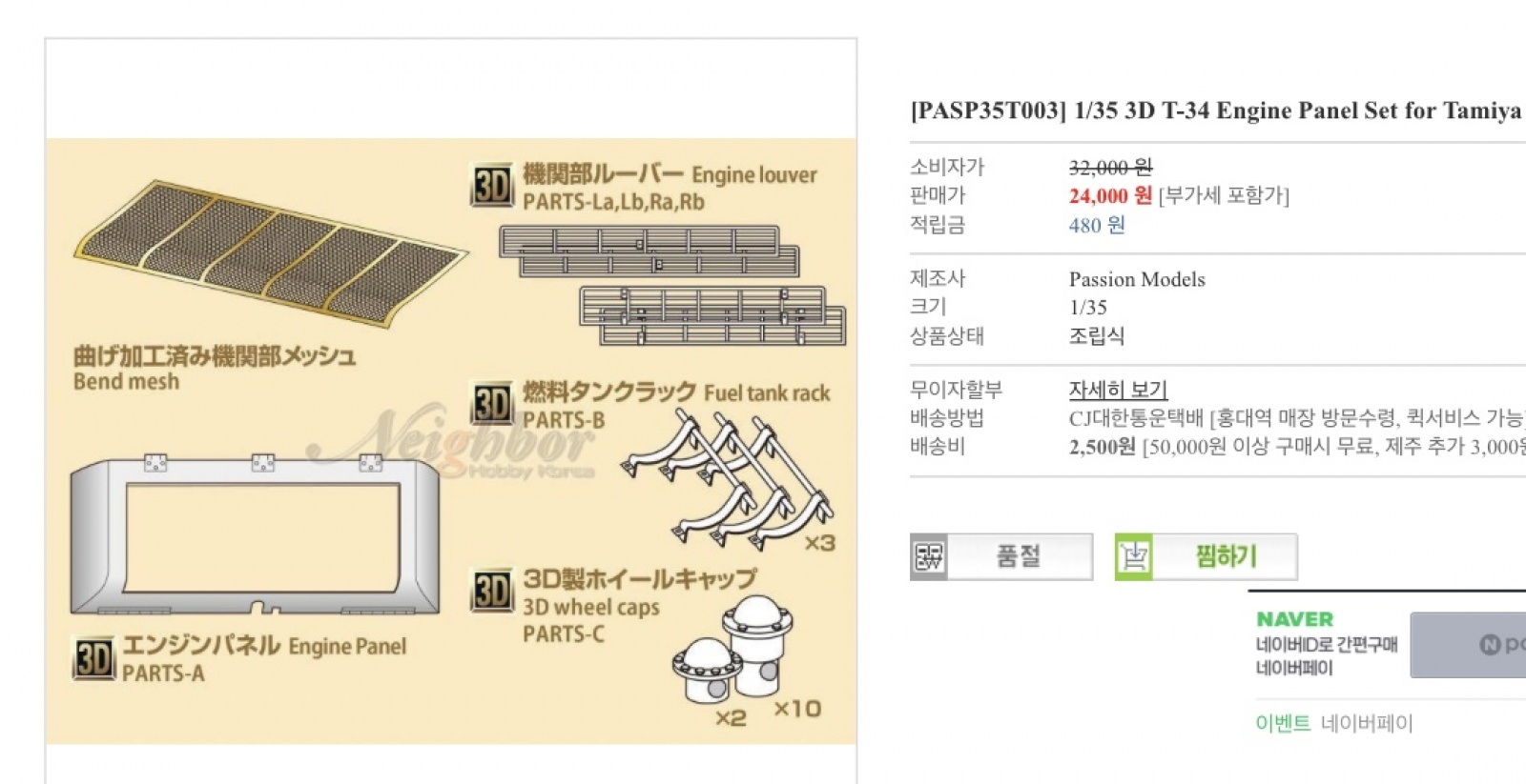 패션모델 타미야 t-34 엔진그릴 교체 디테일업 제품 삽니다