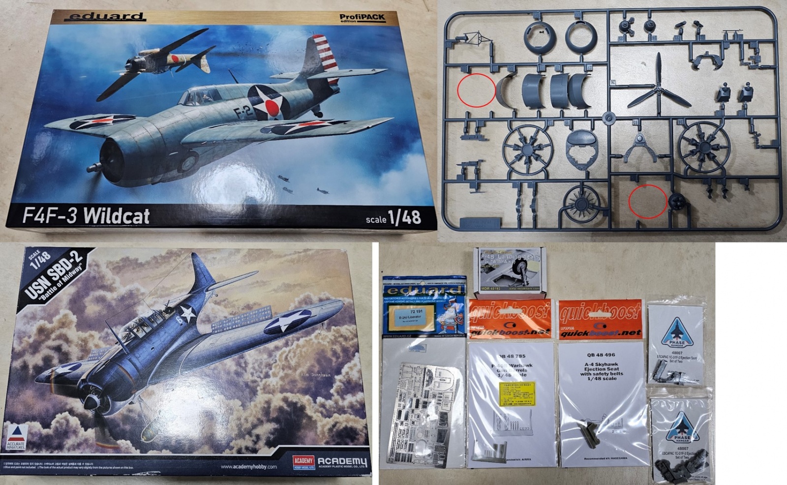 아카데미 1/48 SBD-2 + 에듀어드 F4F-3 프로피팩 ( 카울링 옵션 부품 중 5, 31, 32 부품없음, 사진참조) : 40,000