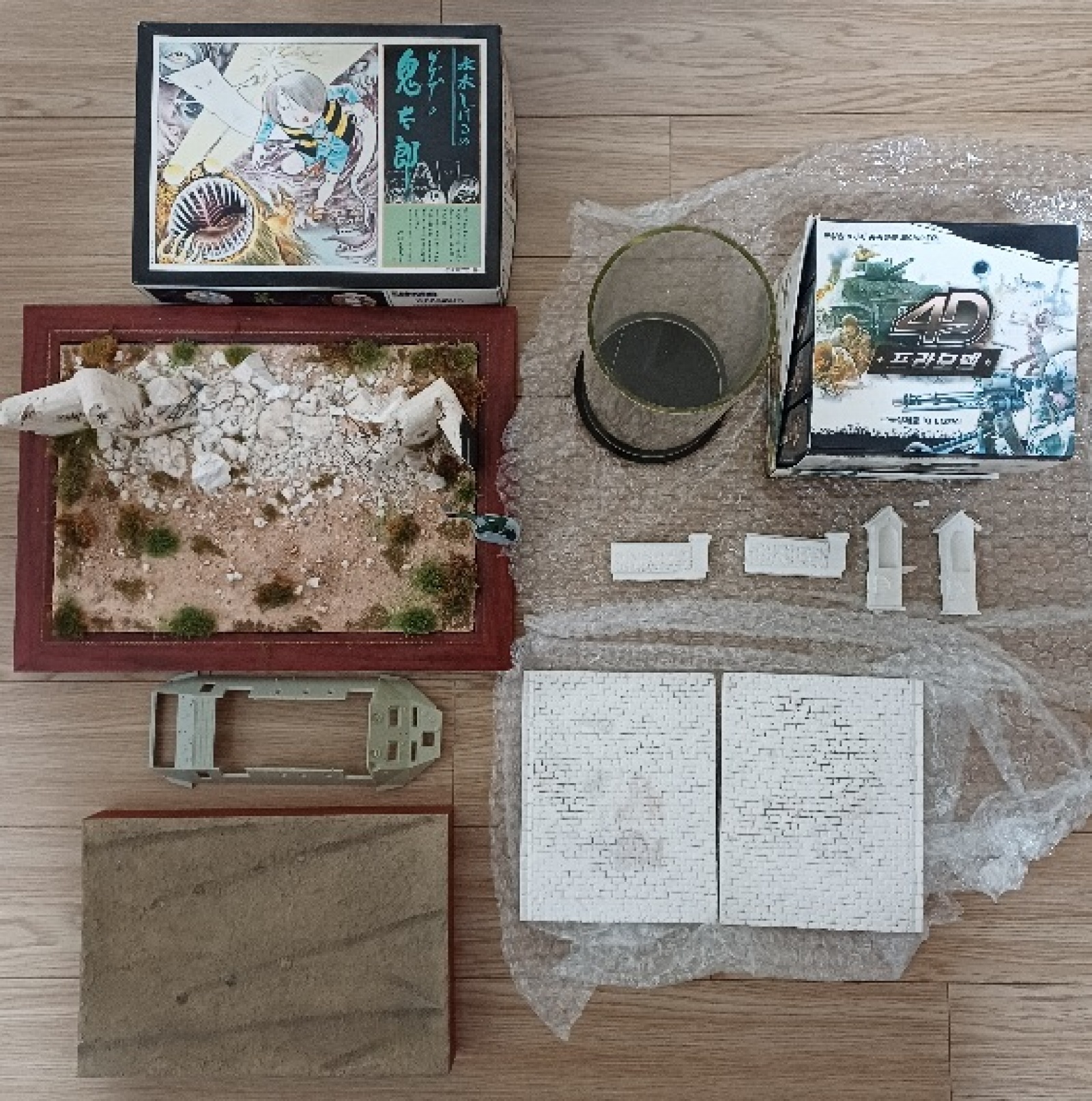 - 키타로, 모형 총, 원형 전시함, 베이스 2개, 석고 건물 세트, 미라지 부스