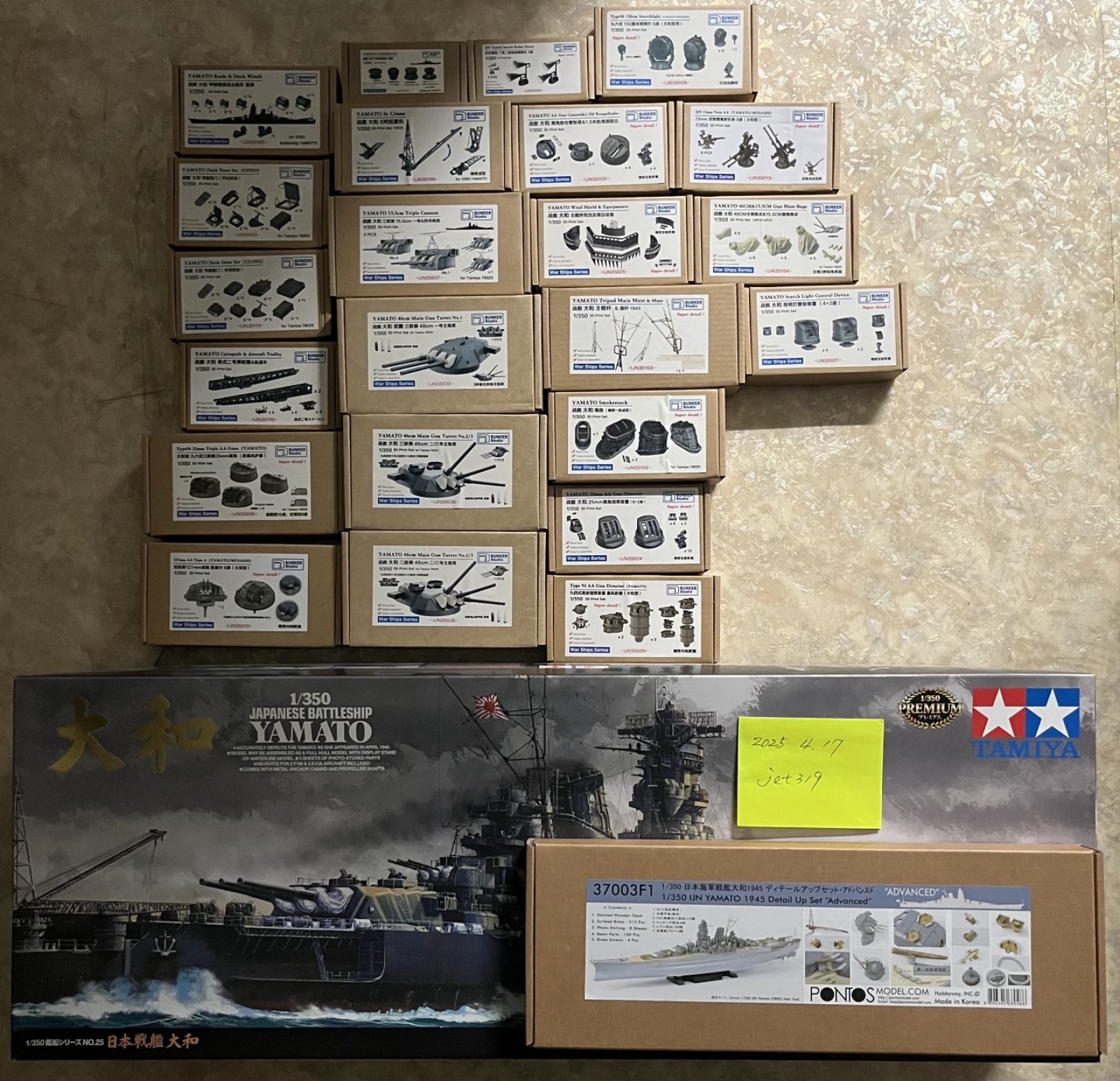 상기 [타미야 1/350 야마토(신금형) + 폰토스 디테일업세트(Advanced) + 벙커스튜디오 3D 디테일업세트(23개)]를