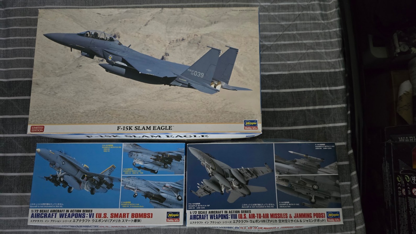 하세가와 1/72 F-15K 슬램 이글 + 1/72 항공기 무장세트 6번(미군 스마트 폭탄 모음) + 1/72 항공기 무장세트 8번(미군 공대공 미사일+ 재밍 포드) : 택포 55,000