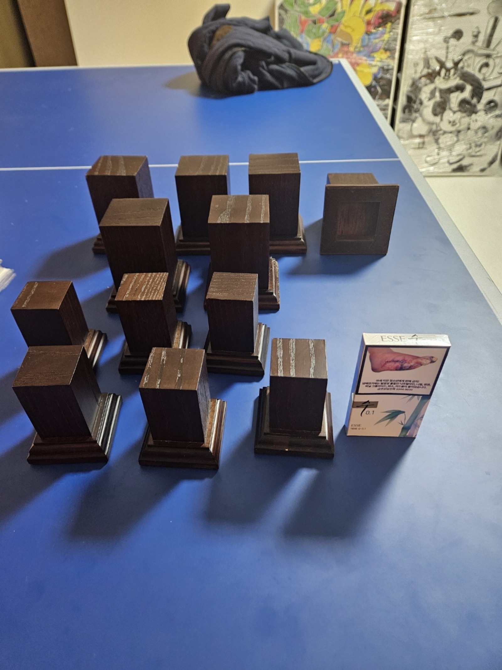 원목베이스 12개 입니다. 일괄로만 13만원에 팝니다. 사이즈가 각기 달라 담배각을 옆에 놓고 사진 찍어 올립니다.