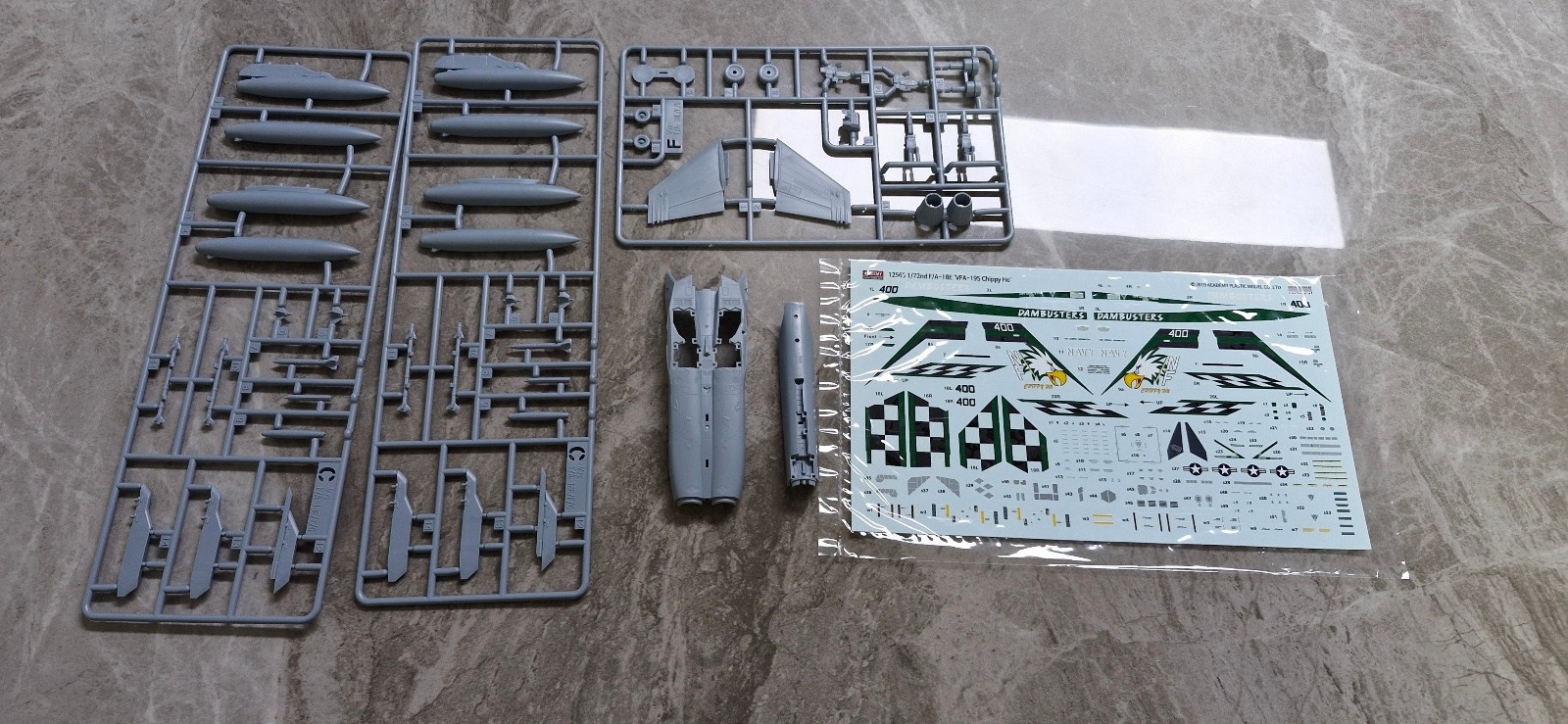 아카데미과학 1/72 미해군 F/A-18E 슈퍼호넷 VFA-195 치피호 12565 첫번째 사진은 부품 다있어요