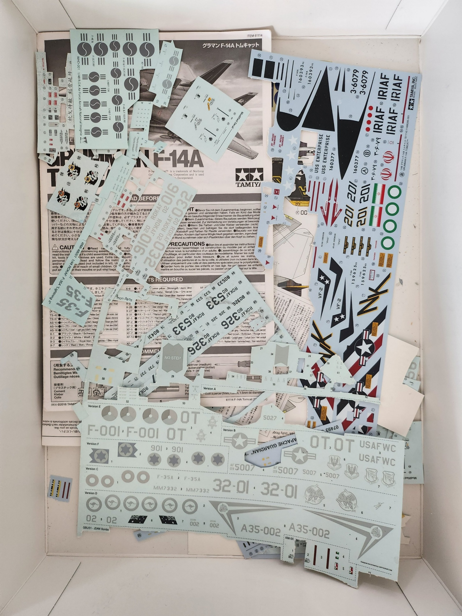 - 데칼: 48스케일 한국공군 현용기에 사용할수 있는 라운델과 여분 도장이 매우 많이 있습니다. 또한 미해군 톰캣에 사용하실 수 있는 이란공군 마킹과 타 마킹도 포함되어있습니다.