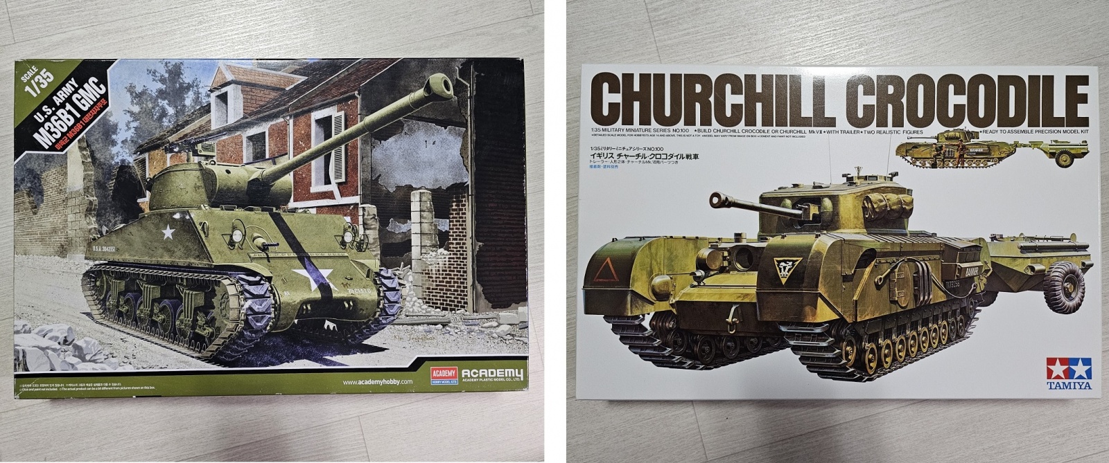 AFV : (아카데미) 1/35 M36B1 구축전차, (타미야) 1/35 처칠 크로커다일 중전차 및 테트라사 위장막
