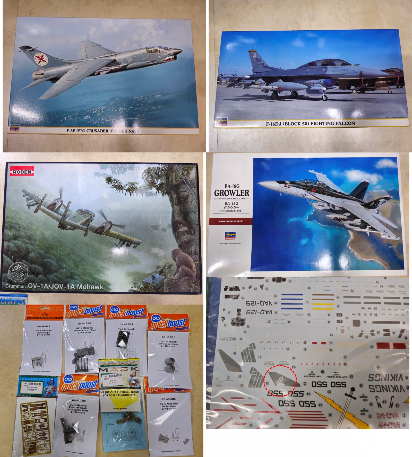 4. 하세가와 1/48 EA-18G (데칼 일부 손상(빨간원)이나 29번 데칼로 대체가능) : 4.5 만- 완료