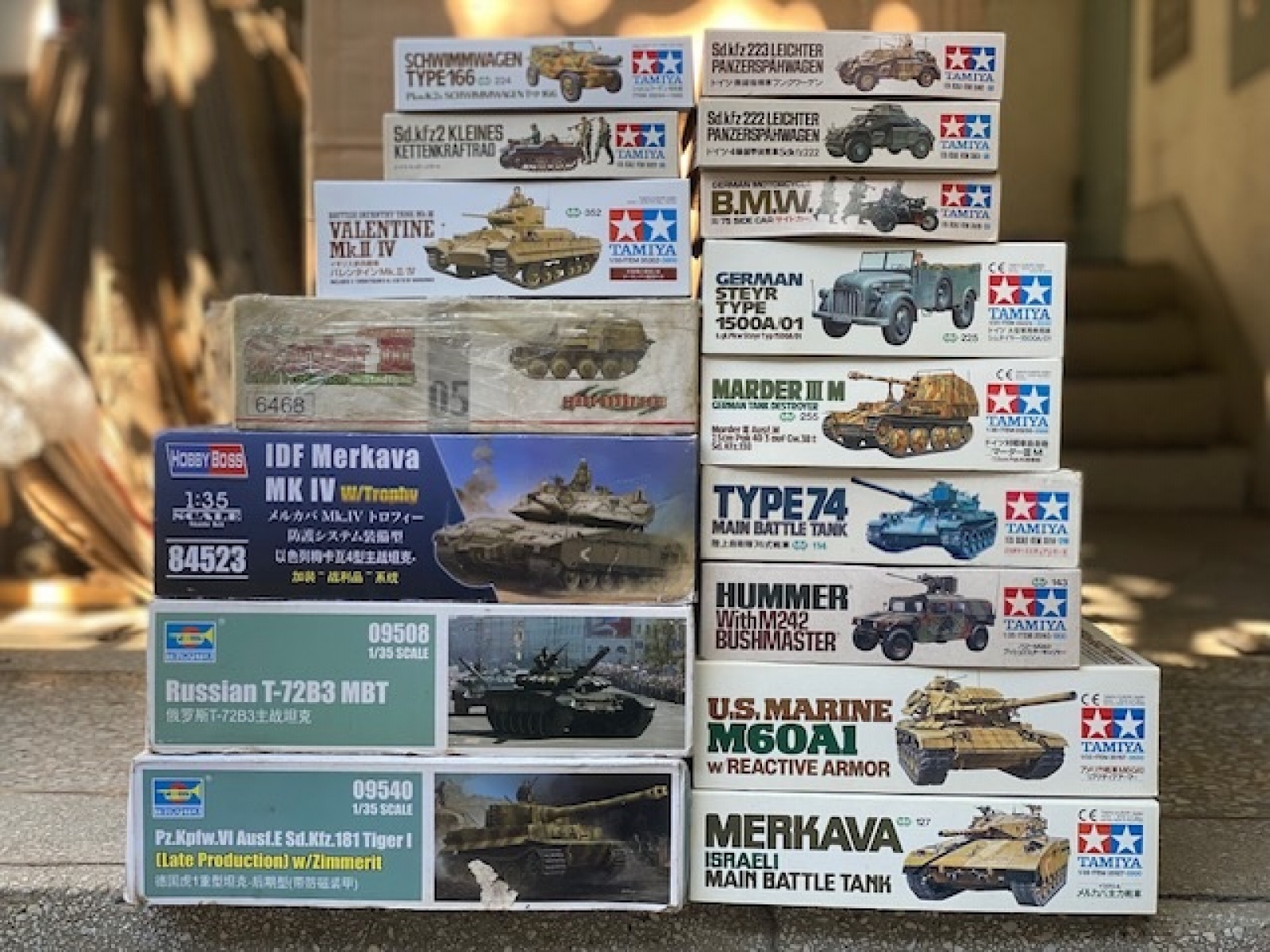 타미야킷앵글선반에 보관만 해서 프라탑있는것보다 박스는양호한데 앵글선박에