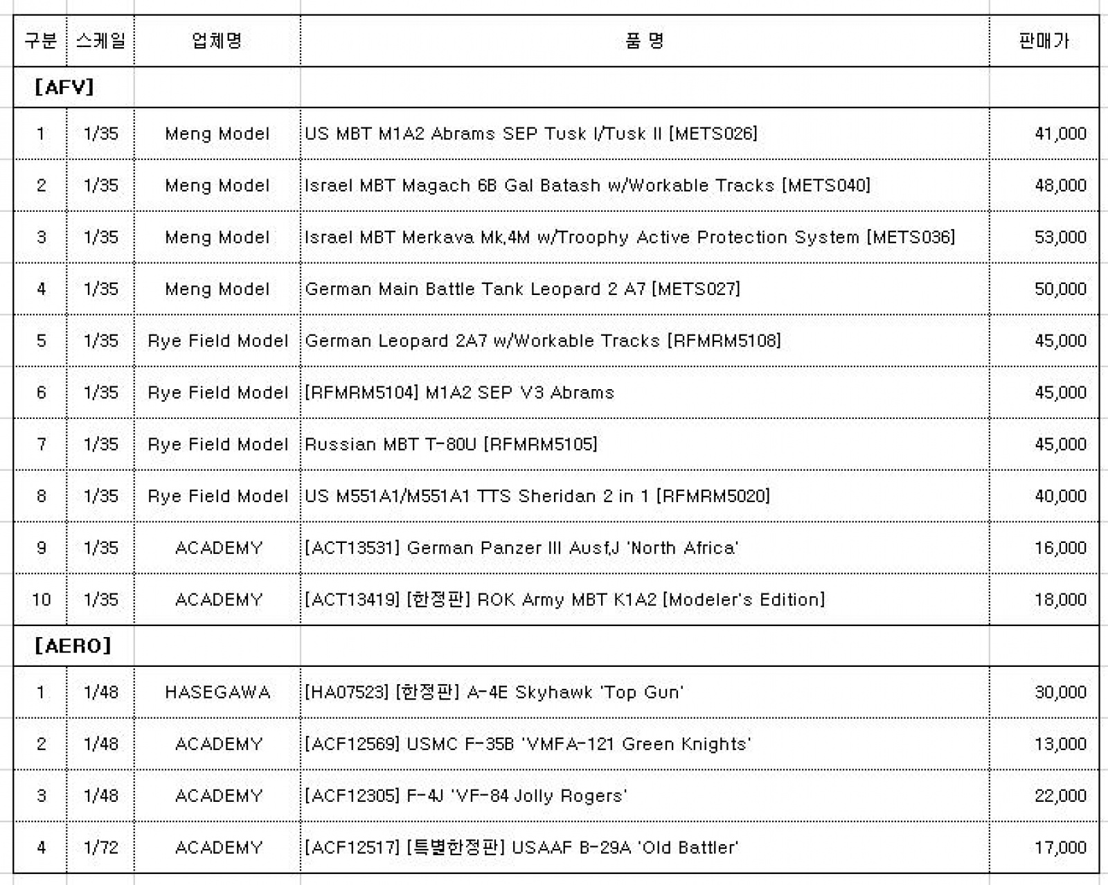 아래 표에서 배송비는 별도이며, 2개 이상씩만 판매합니다.