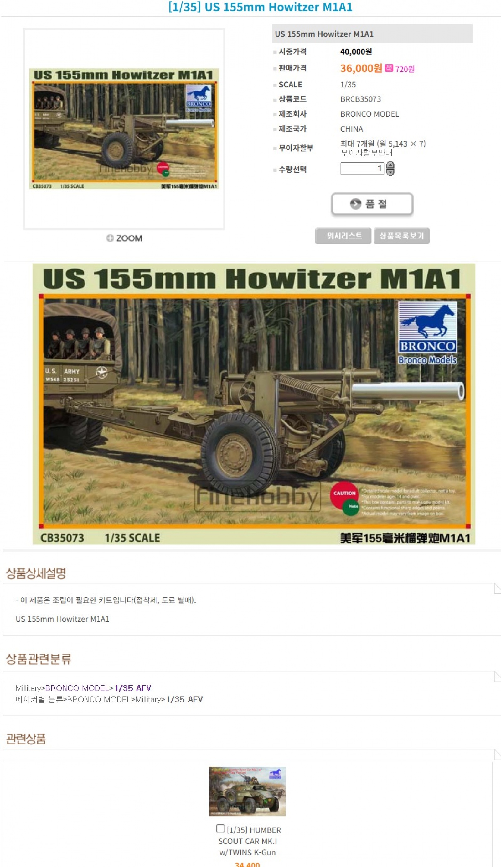 브롱코 155mm 키트 구매 합니다.