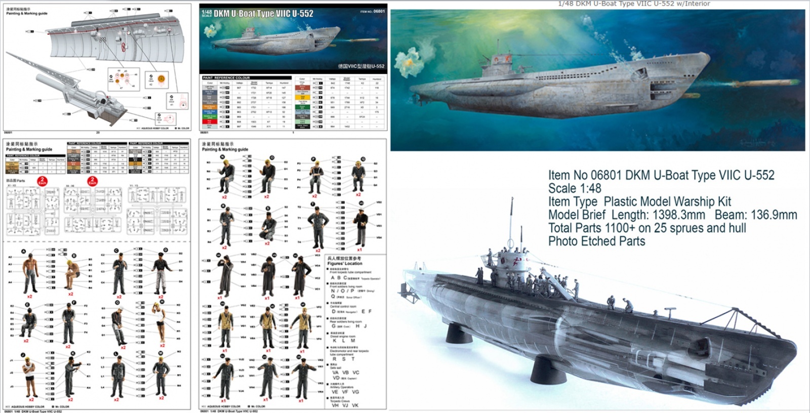 1/48 DKM U-Boat Type VIIC U-552 w/Interior 잠수함 키트 판매합니다.